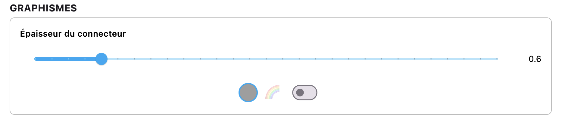 And finally, as some have small screens AND bad eyes (I preach a little for my parish…), the control panel now offers an option to change the thickness of the connectors, that is to say the lines connecting the planets to the wheel, but also their color. For example, the Sun with its sharp yellow can be seen well in dark mode, but much less in light mode. Now, if you want the connectors all in the same color like here in gray, it’s possible!