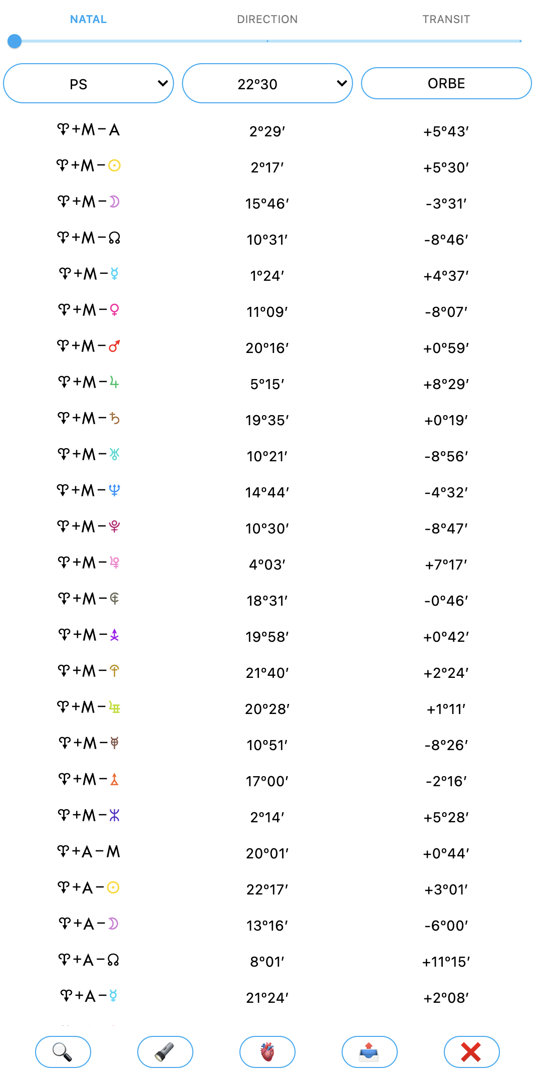 + Then, as a second feature, you will find the Planetary Sequences ⛓️, a tool developed by Ruth Brummund which can, like the Astroportrait®, contribute to birth time rectification.