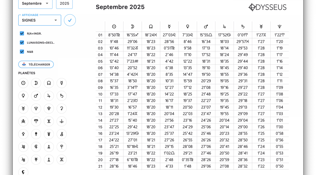 Aujourd’hui est le jour d’ouverture du site Odysseus.guide, le site officiel de l’application disponible pour iOS et Mac, dans quelques jours sur Android, puis sur Windows. J’ai beaucoup de joie à pouvoir enfin le présenter, car il est l’aboutissement de tous les mois de programmation l’ayant précédé et ayant donné naissance à l’application Odysseus®, la première application d’Astrologie Uranienne réunissant tous les outils dont le praticien peut avoir besoin. Au cours des prochains temps apparaîtront des pages d’explication quant à…