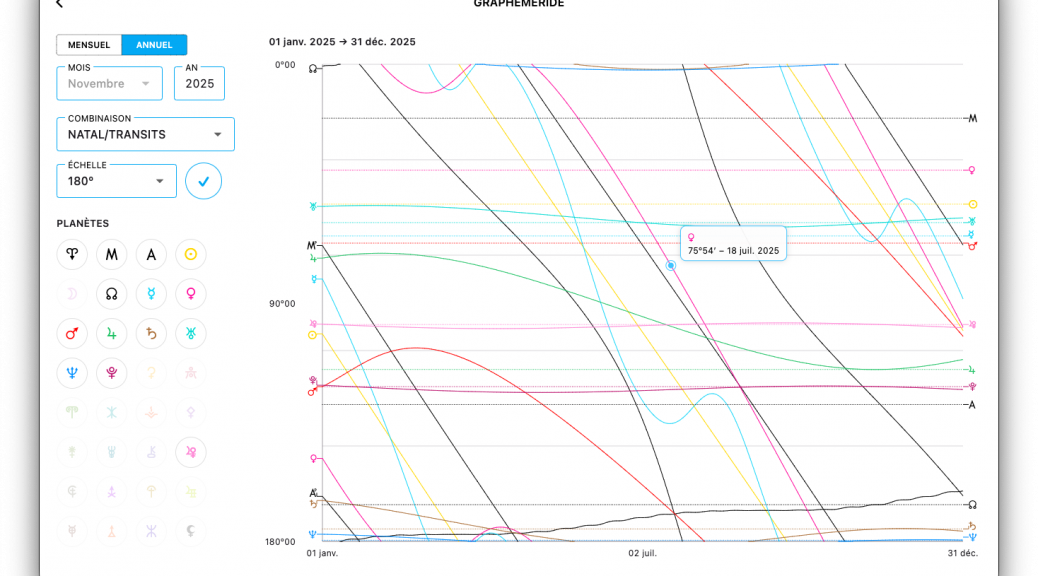 EDIT : mise à jour 6.7.1 et 6.7.2 dans la foulée pour proposer de séparer – dans les options – l’affichage des Rétrogradations et des Antérogradations car ces dernières peuvent considérablement ralentir certaines machines si beaucoup de planètes sont affichées, mais aussi pour corriger un bug qui empêchait certaines éclipses d’apparaître. Et voici la version 6.7.0 qui aura été un énorme morceau à préparer ! Au programme, on commence d’abord par les corrections : Correction d’un bug dans le tri…