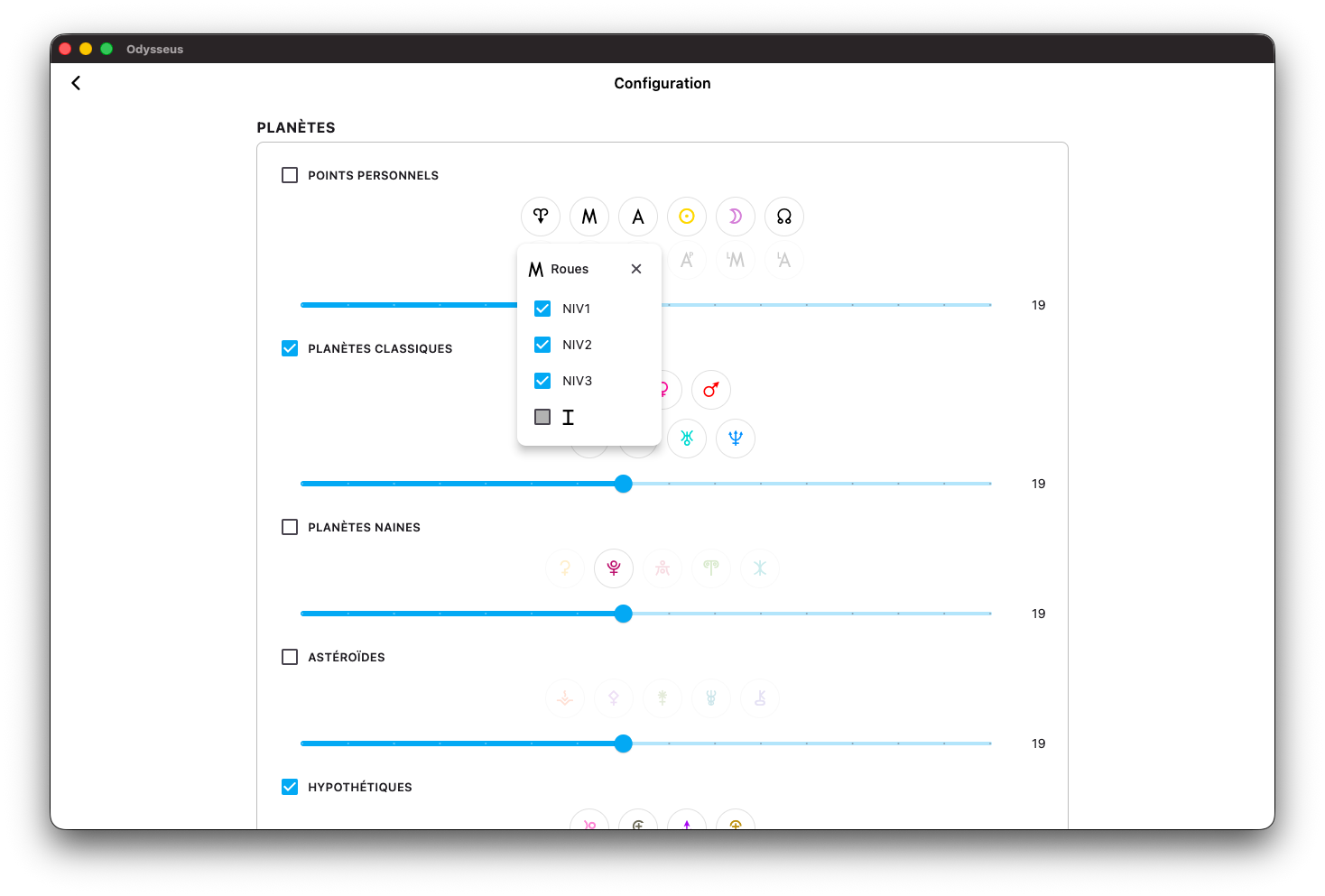 - Aussi, pour la version ordinateur (Mac/Windows), lorsque vous laisserez votre souris sur une planète pendant plus d’une seconde, une info-bulle s’affichera contenant des informations sur ladite planète en question. Pratique pour connaître sa position en degré par exemple sans avoir à cliquer dessus, si par exemple on ne souhaite pas bouger la roue. Mais aussi, quand vous ferez usage de mi-points ou points sensibles, l’info-bulle vous rappellera de quelles planètes ce point personnalisable est composé. Pratique ! C’est donc un nouvel outil bien sympa mais qu’il est, vous vous en doutez, impossible de transposer aux version mobiles puisque nous n’avons pas de curseur de souris à placer au-dessus des planètes.