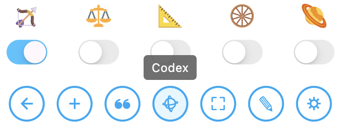 + Et enfin, et non des moindres, car autant dire que je l’attendais de pied ferme cette amélioration, j’ai ENFIN ajouté la lecture du Codex en direct sur la carte, en fonction de ce que la roue pointe. On l’ouvre sous forme d’onglet latéral avec le bouton Ł :