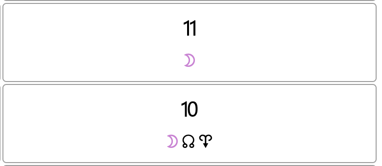 + Puisque nous parlions des Maisons et du Tableau des Maisons, 3 nouveautés. La première, dans le panneau de configuration ⛭, vous avez à présent la possibilité de cocher une option dans le bloc « CALCULS » pour afficher les planètes dans les 2 Maisons qui se jouxtent lorsque les planètes en question se trouvent à moins de Xº de la cuspide de la Maison suivante. Ainsi, par exemple, si une planète se trouve à 2º de la cuspide de la Maison suivante, et que vous avez mis dans la case du « saut dans la maison suivante » 5º, alors en cochant l’option d’affichage, la planète en question apparaîtra en même temps dans les deux Maisons, celle dans laquelle elle se trouve, et celle qu’elle approche.