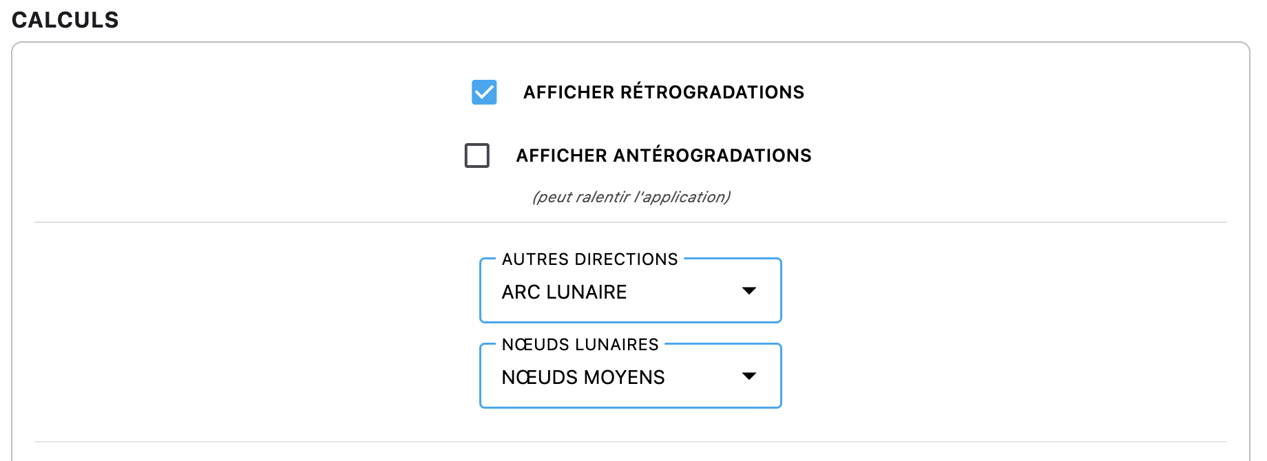 + Il est maintenant possible d’afficher, depuis le panneau de configuration, les Nœuds Lunaires « Moyens » plutôt que « Vrais » si vous le souhaitez. Pour ceux qui suivent les articles de Witte, c’est avec les Moyens qu’il travaillait.