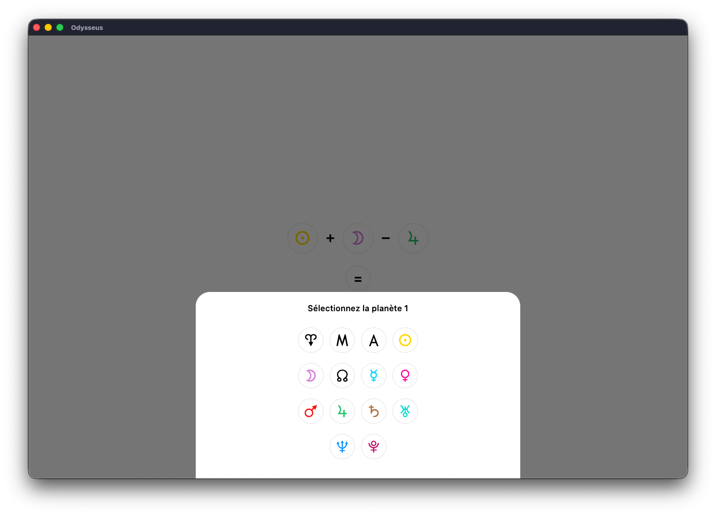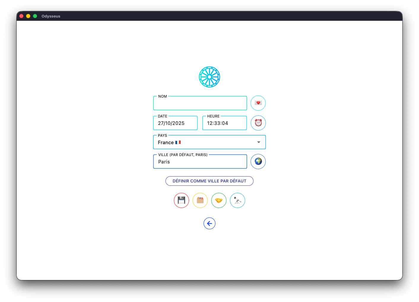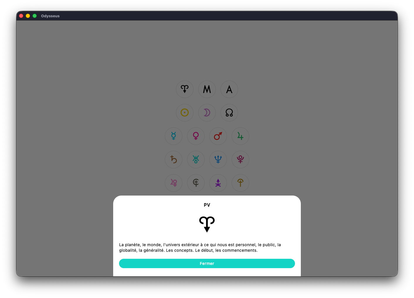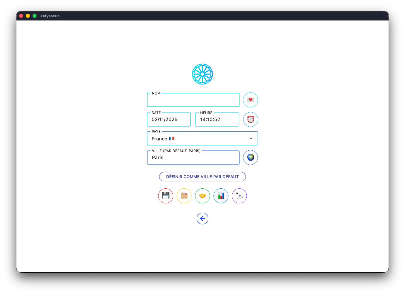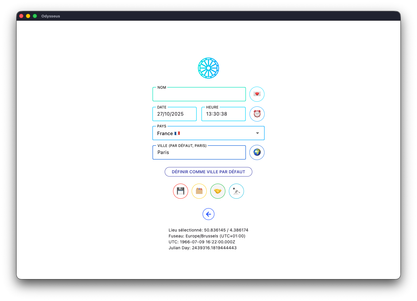 Le logiciel Odysseus® est un logiciel simple mais qui se veut le plus complet possible afin d’offrir une pratique de l’astrologie uranienne la plus exhaustive possible. Or, étant disponible avant tout sur téléphone et tablette, il fallait trouver des moyens d’optimiser l’espace le plus efficacement possible. Ainsi, quelques fonctionnalités se trouvent « dissimulées » au premier regard, et nécessite de connaître quelques astuces afin de les découvrir. Voici alors un guide pour vous aider dans votre emploi du logiciel.