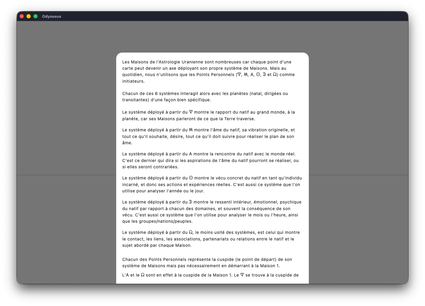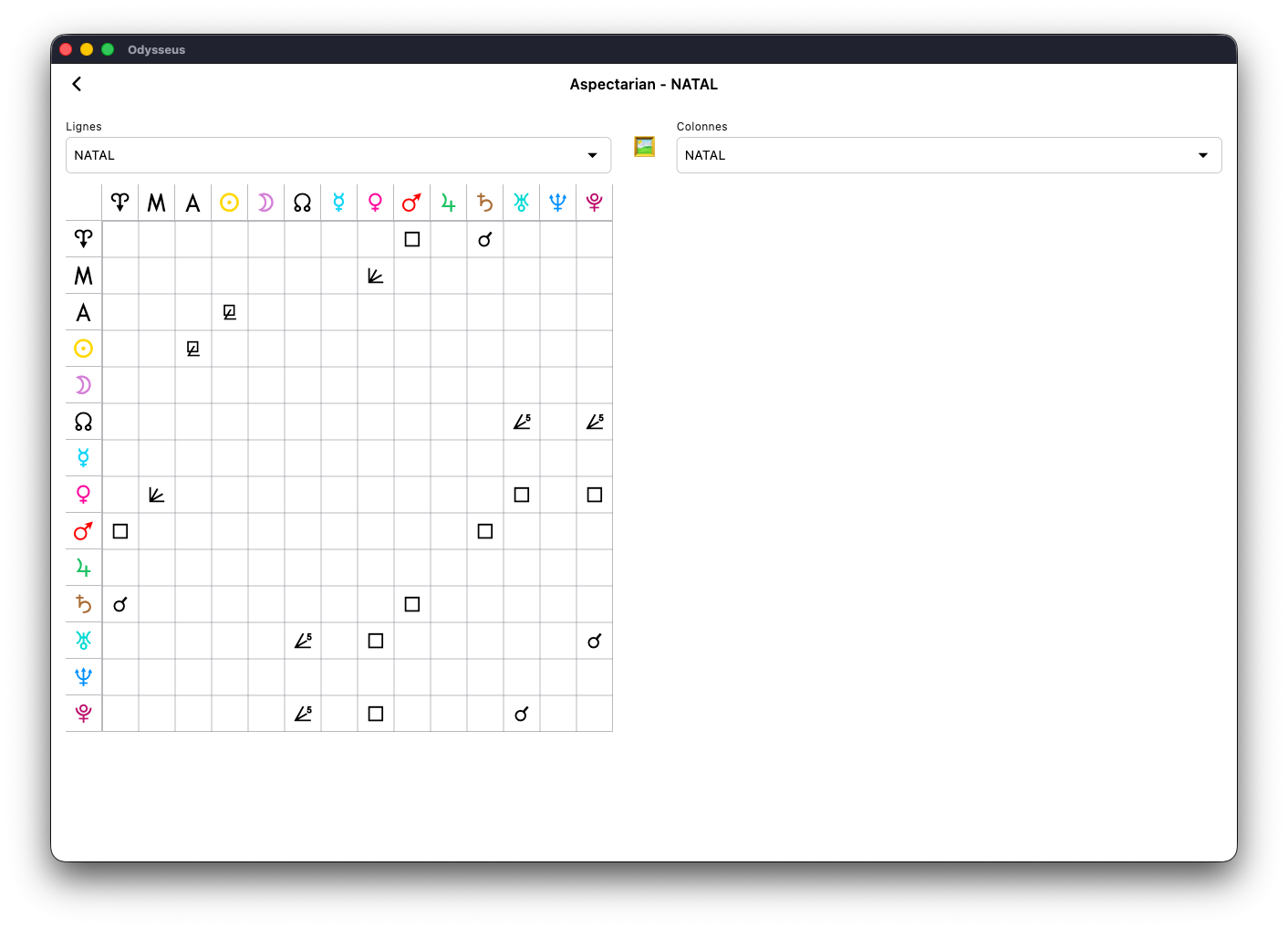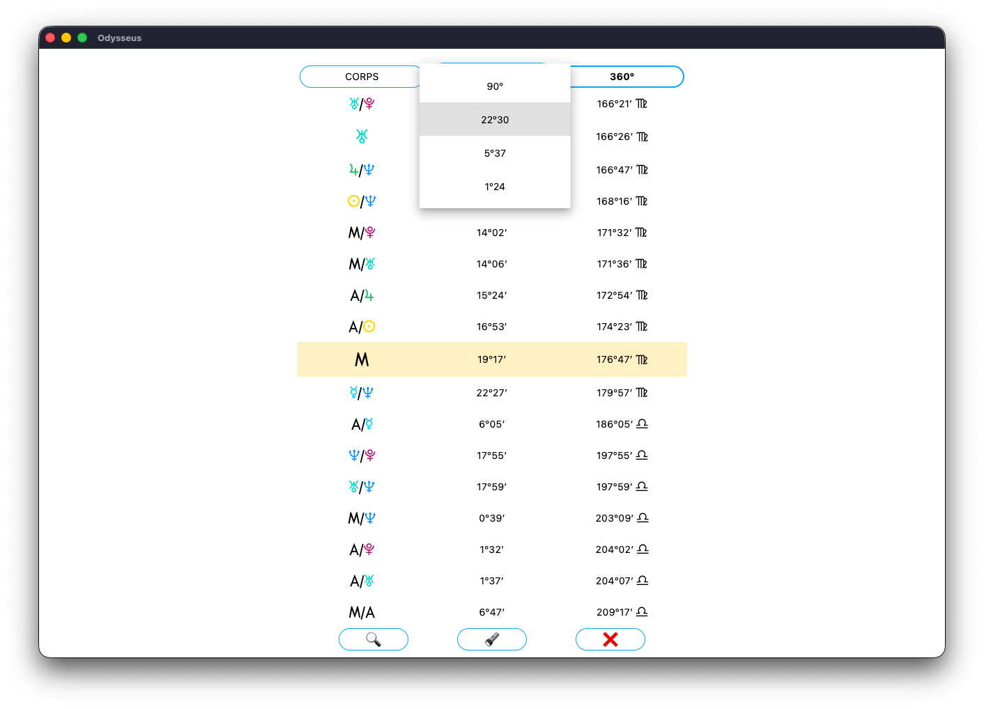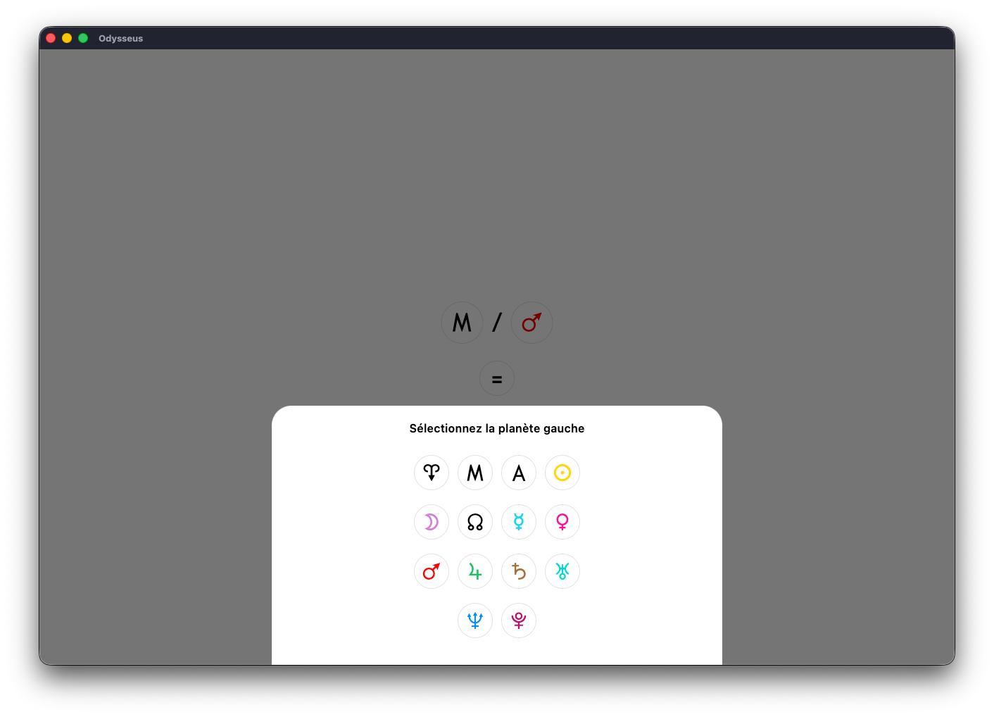 Le logiciel Odysseus® est un logiciel simple mais qui se veut le plus complet possible afin d’offrir une pratique de l’astrologie uranienne la plus exhaustive possible. Or, étant disponible avant tout sur téléphone et tablette, il fallait trouver des moyens d’optimiser l’espace le plus efficacement possible. Ainsi, quelques fonctionnalités se trouvent « dissimulées » au premier regard, et nécessite de connaître quelques astuces afin de les découvrir. Voici alors un guide pour vous aider dans votre emploi du logiciel.