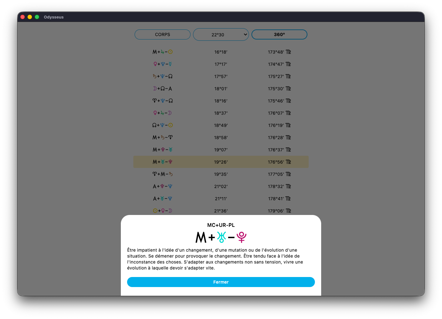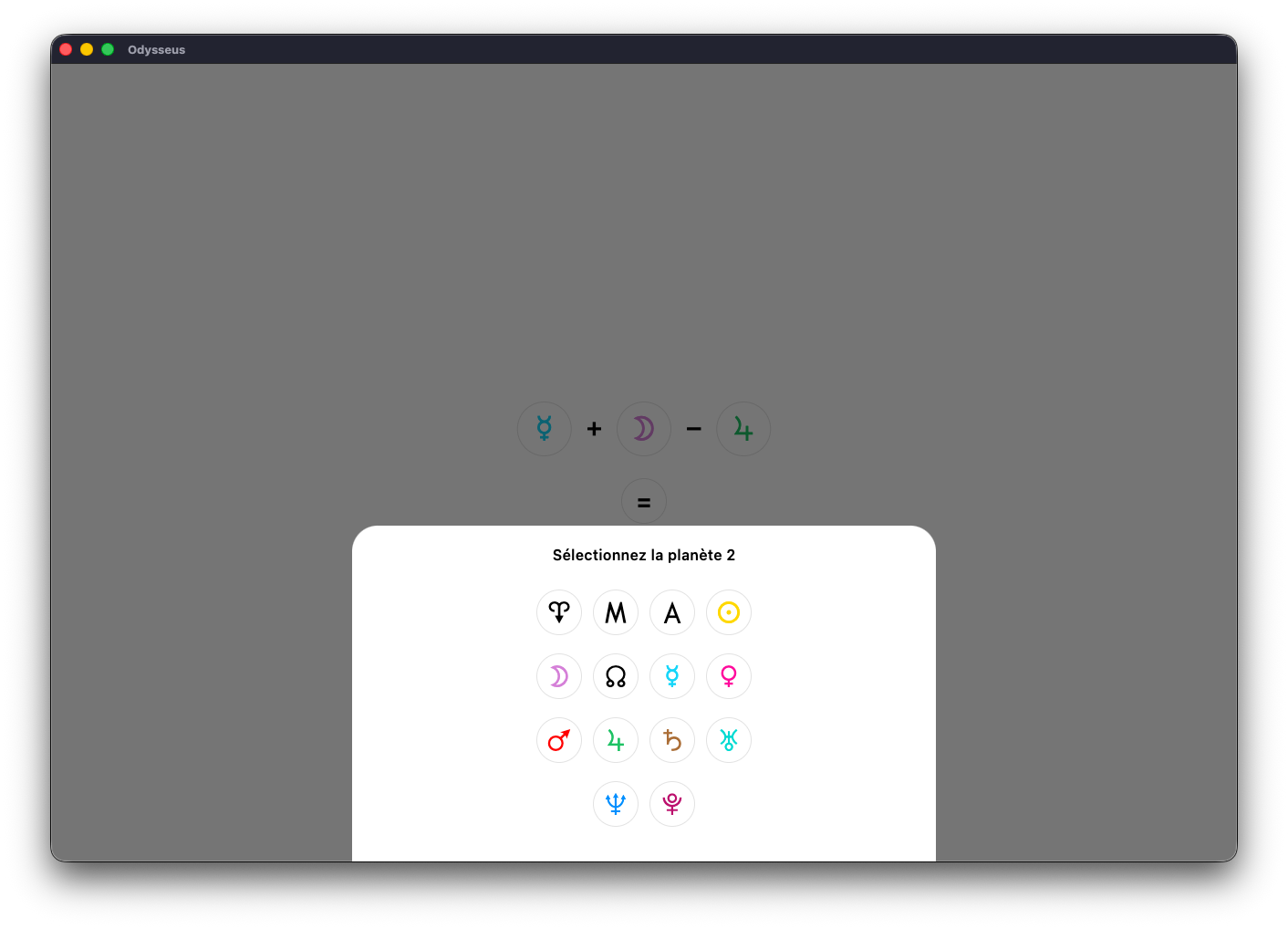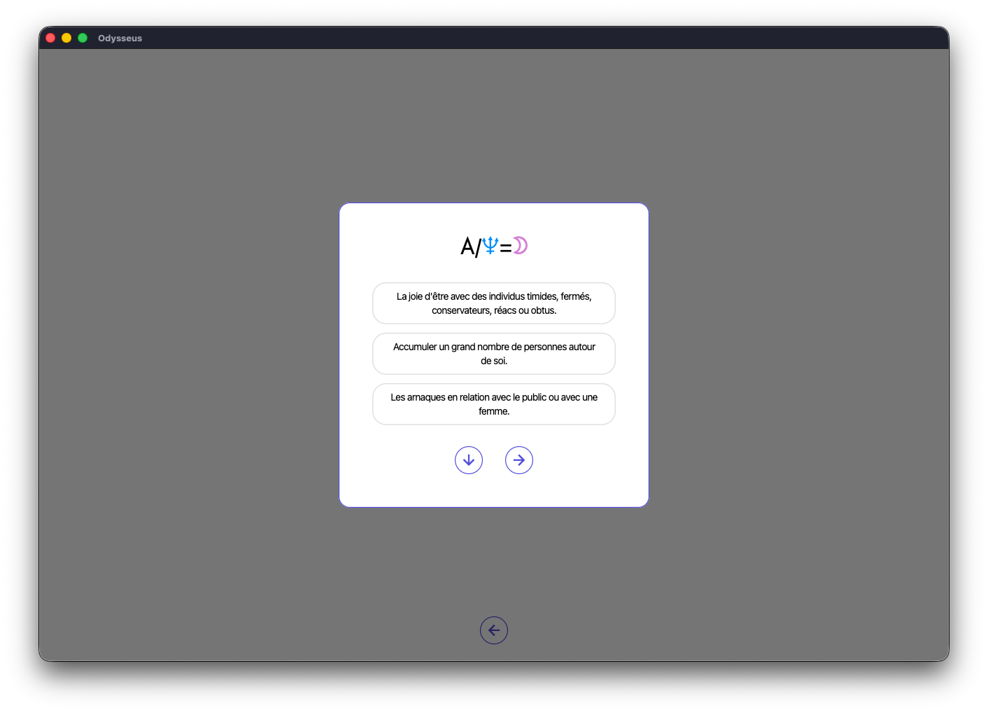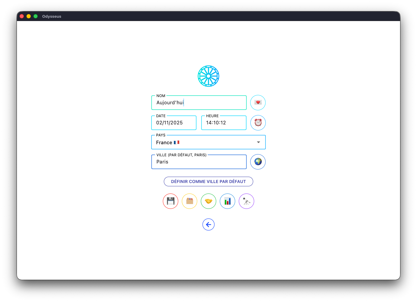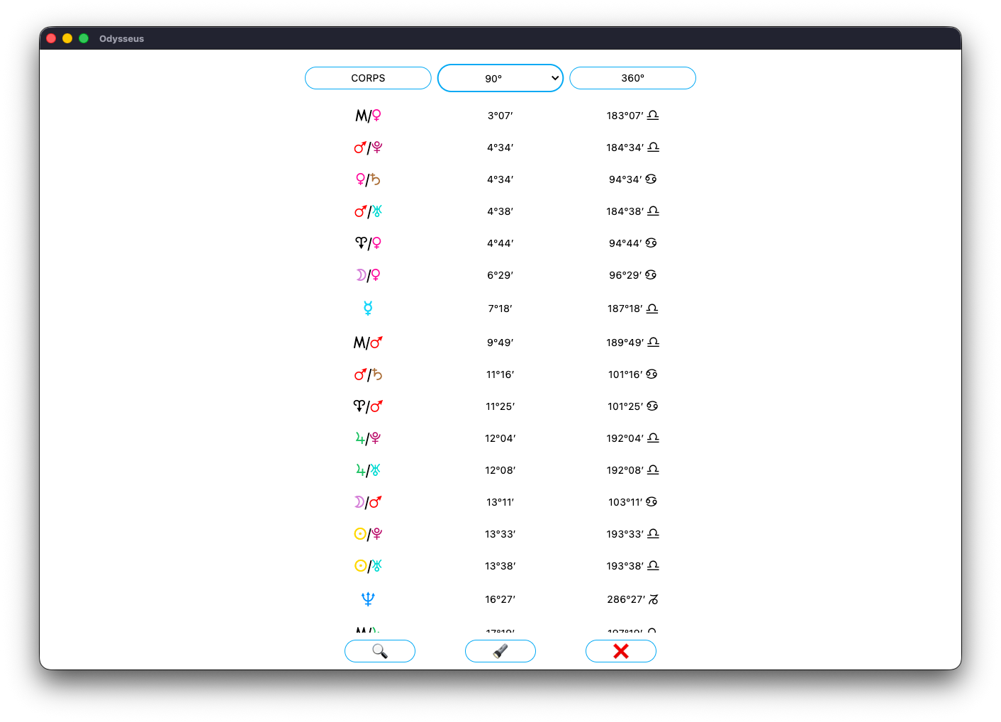 Le logiciel Odysseus® est un logiciel simple mais qui se veut le plus complet possible afin d’offrir une pratique de l’astrologie uranienne la plus exhaustive possible. Or, étant disponible avant tout sur téléphone et tablette, il fallait trouver des moyens d’optimiser l’espace le plus efficacement possible. Ainsi, quelques fonctionnalités se trouvent « dissimulées » au premier regard, et nécessite de connaître quelques astuces afin de les découvrir. Voici alors un guide pour vous aider dans votre emploi du logiciel.