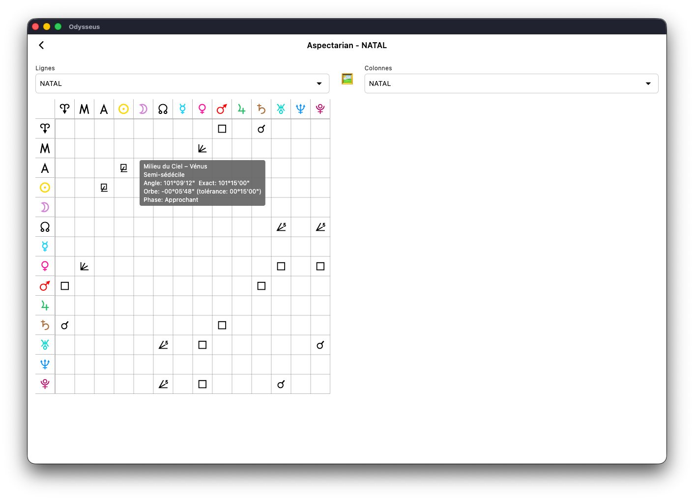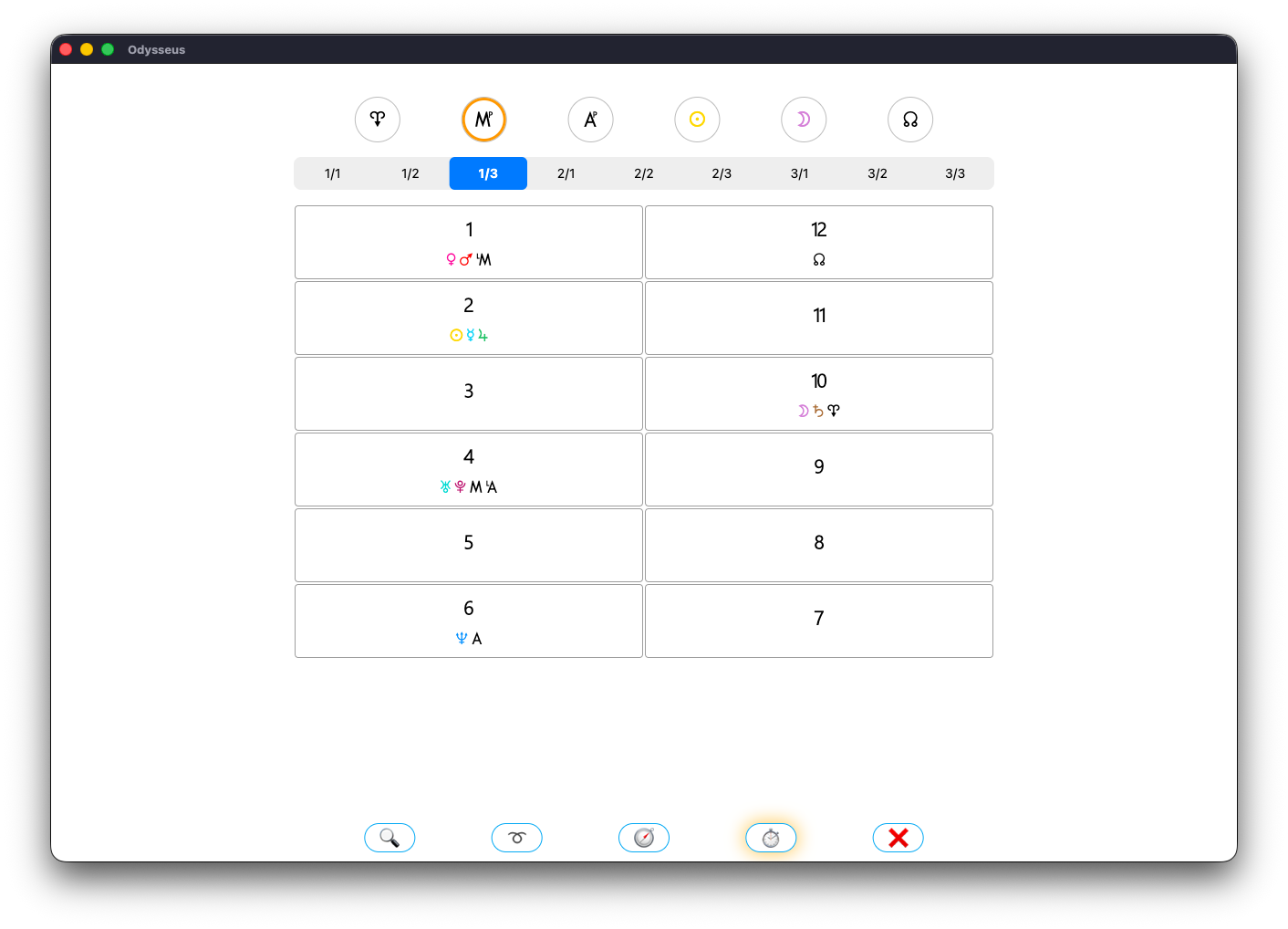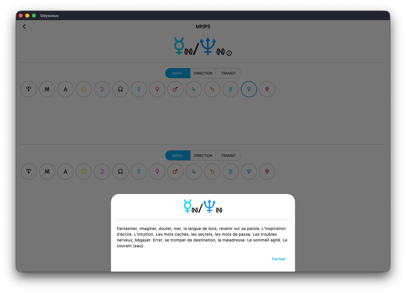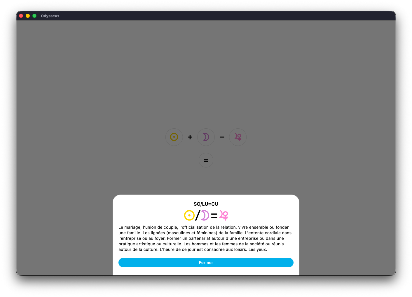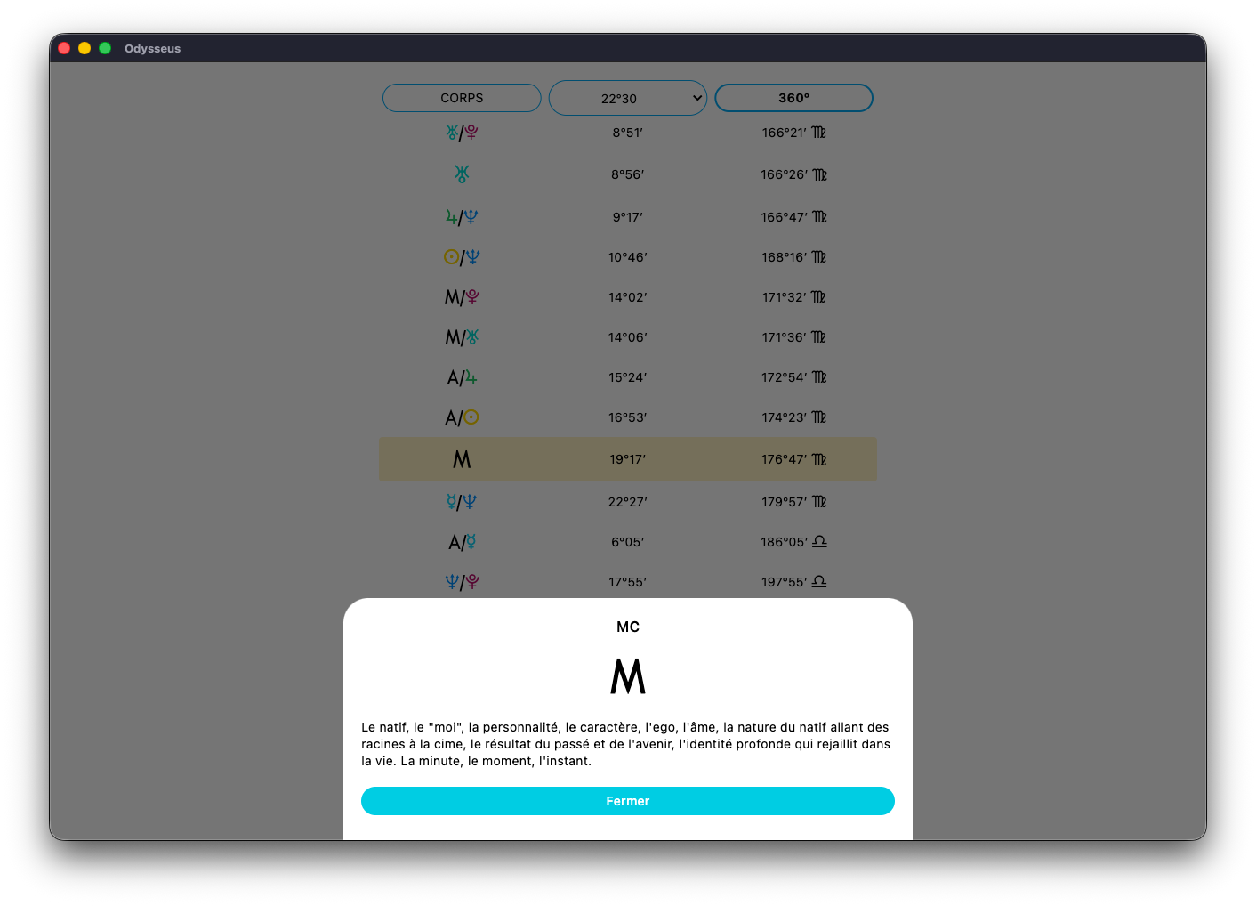 Le logiciel Odysseus® est un logiciel simple mais qui se veut le plus complet possible afin d’offrir une pratique de l’astrologie uranienne la plus exhaustive possible. Or, étant disponible avant tout sur téléphone et tablette, il fallait trouver des moyens d’optimiser l’espace le plus efficacement possible. Ainsi, quelques fonctionnalités se trouvent « dissimulées » au premier regard, et nécessite de connaître quelques astuces afin de les découvrir. Voici alors un guide pour vous aider dans votre emploi du logiciel.