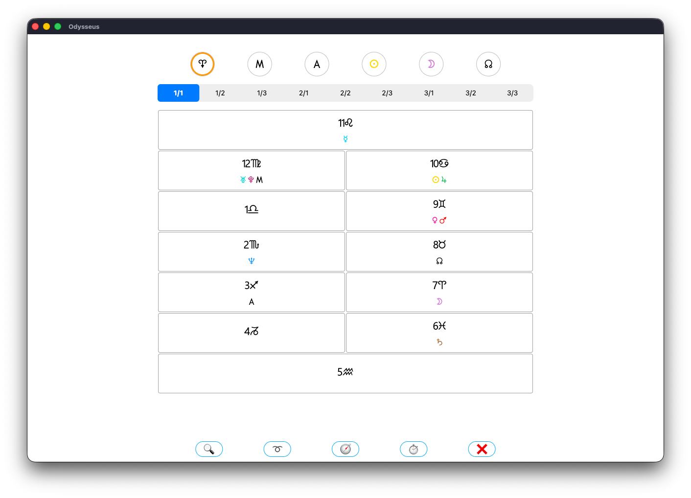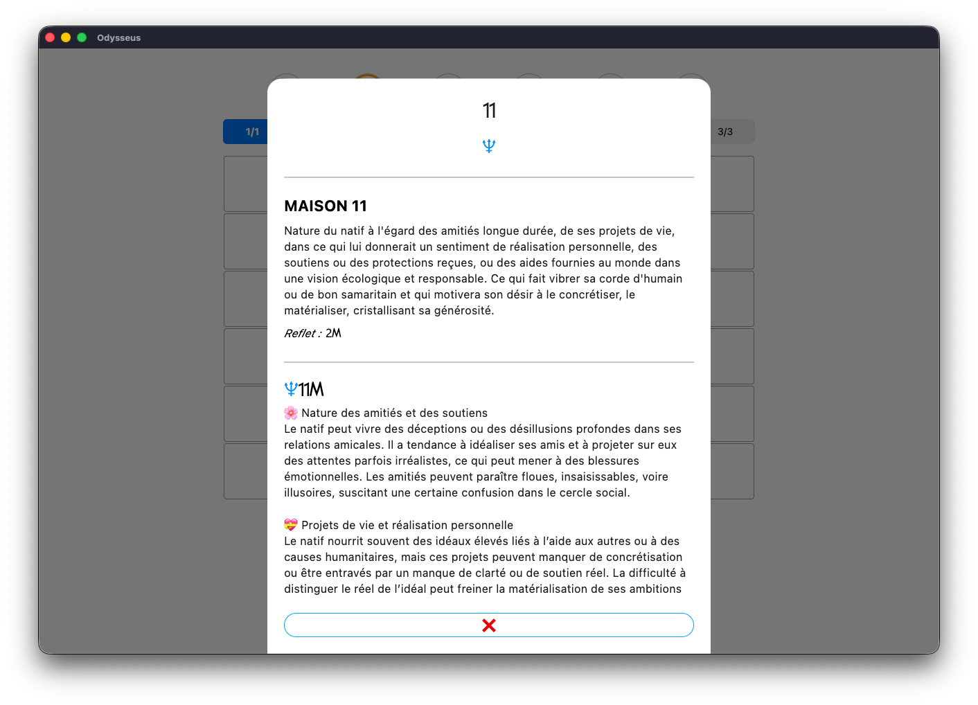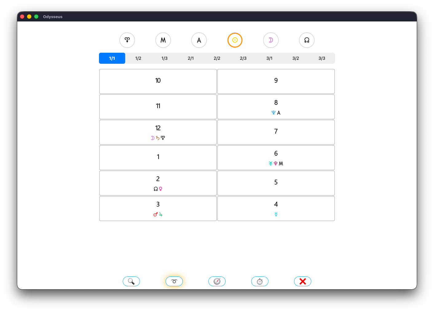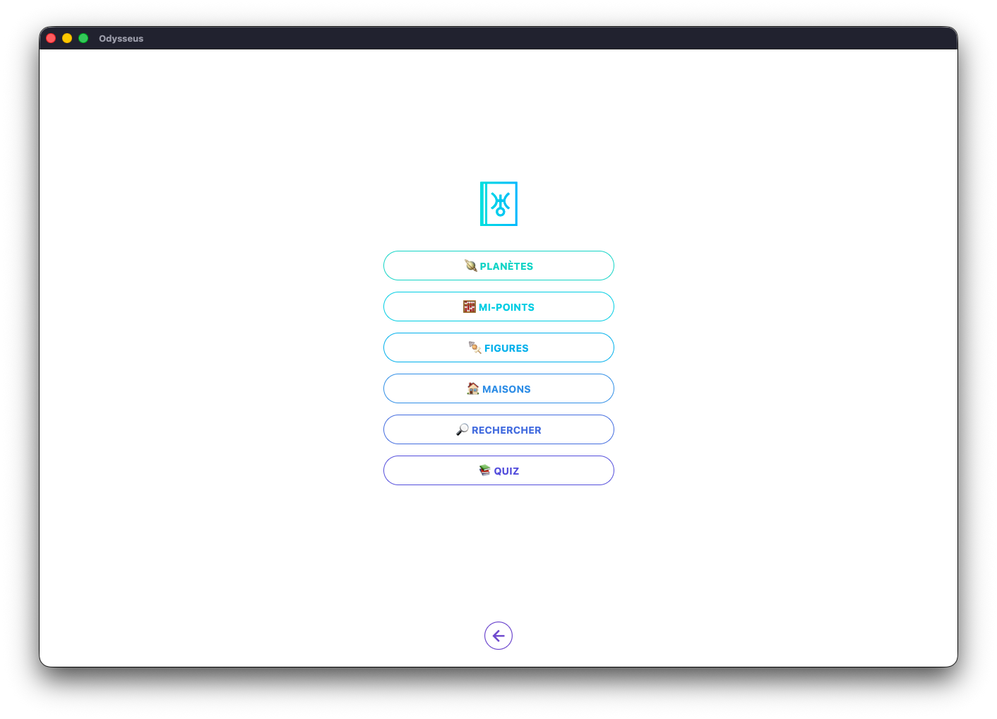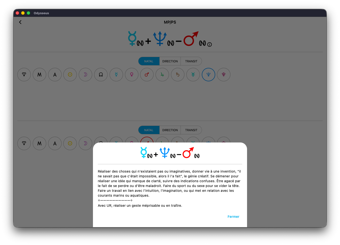 Le logiciel Odysseus® est un logiciel simple mais qui se veut le plus complet possible afin d’offrir une pratique de l’astrologie uranienne la plus exhaustive possible. Or, étant disponible avant tout sur téléphone et tablette, il fallait trouver des moyens d’optimiser l’espace le plus efficacement possible. Ainsi, quelques fonctionnalités se trouvent « dissimulées » au premier regard, et nécessite de connaître quelques astuces afin de les découvrir. Voici alors un guide pour vous aider dans votre emploi du logiciel.