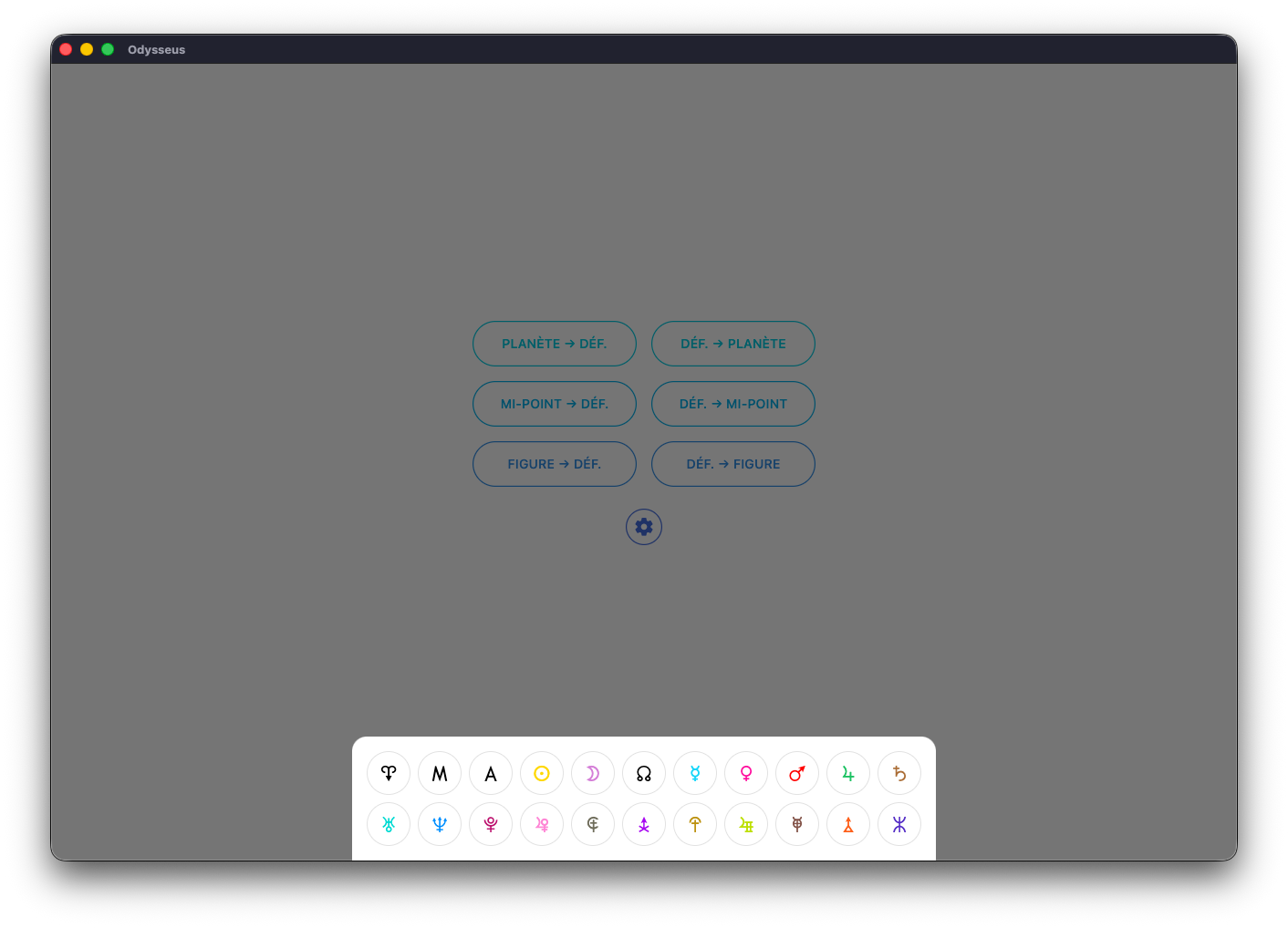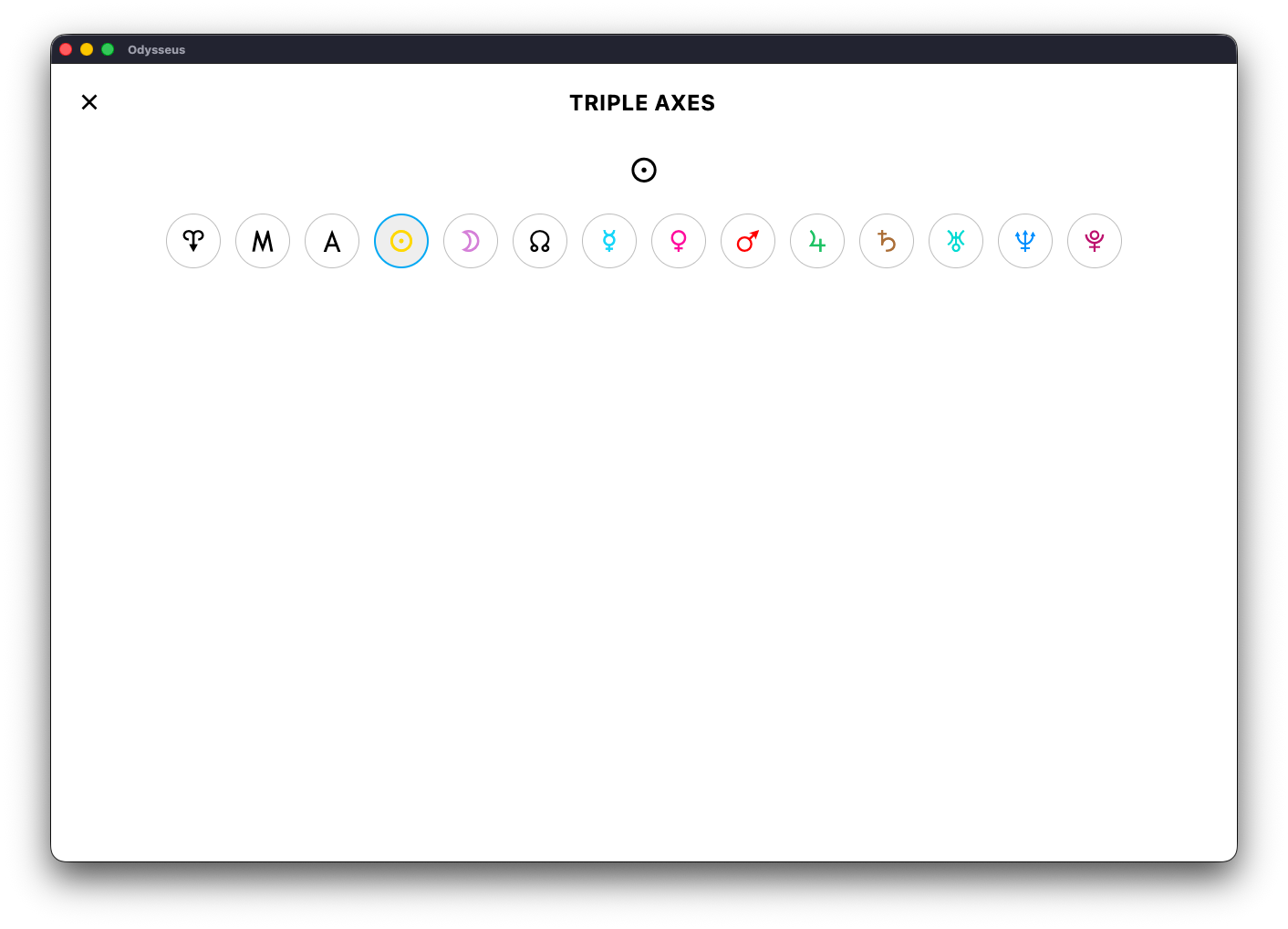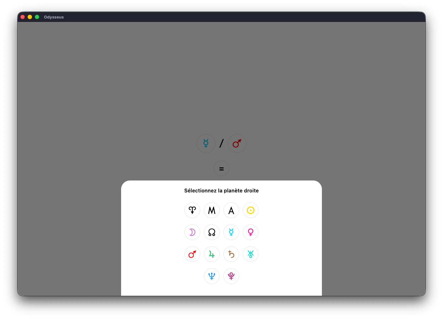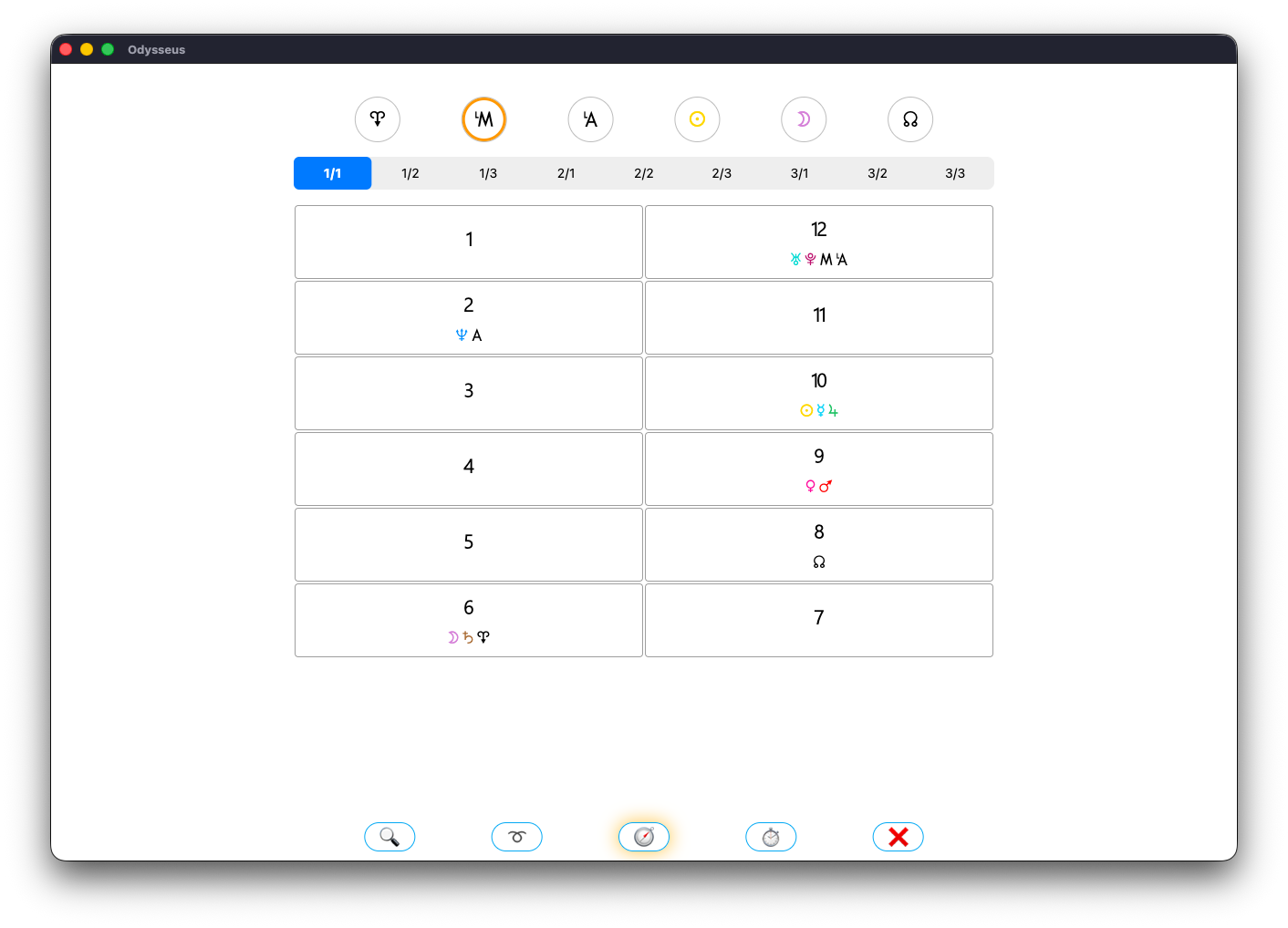 Le logiciel Odysseus® est un logiciel simple mais qui se veut le plus complet possible afin d’offrir une pratique de l’astrologie uranienne la plus exhaustive possible. Or, étant disponible avant tout sur téléphone et tablette, il fallait trouver des moyens d’optimiser l’espace le plus efficacement possible. Ainsi, quelques fonctionnalités se trouvent « dissimulées » au premier regard, et nécessite de connaître quelques astuces afin de les découvrir. Voici alors un guide pour vous aider dans votre emploi du logiciel.