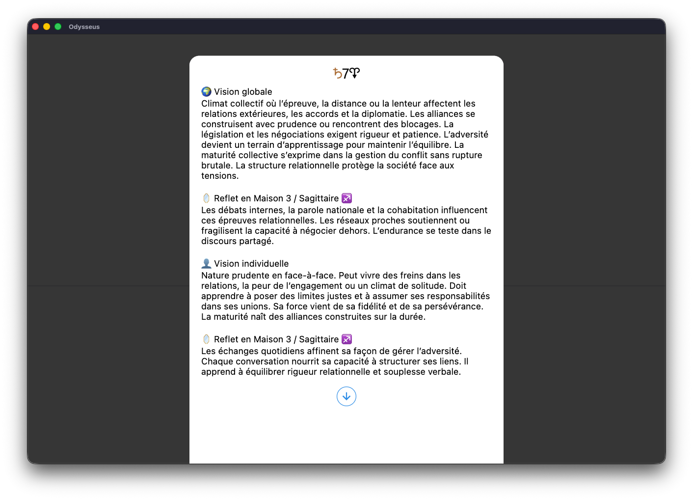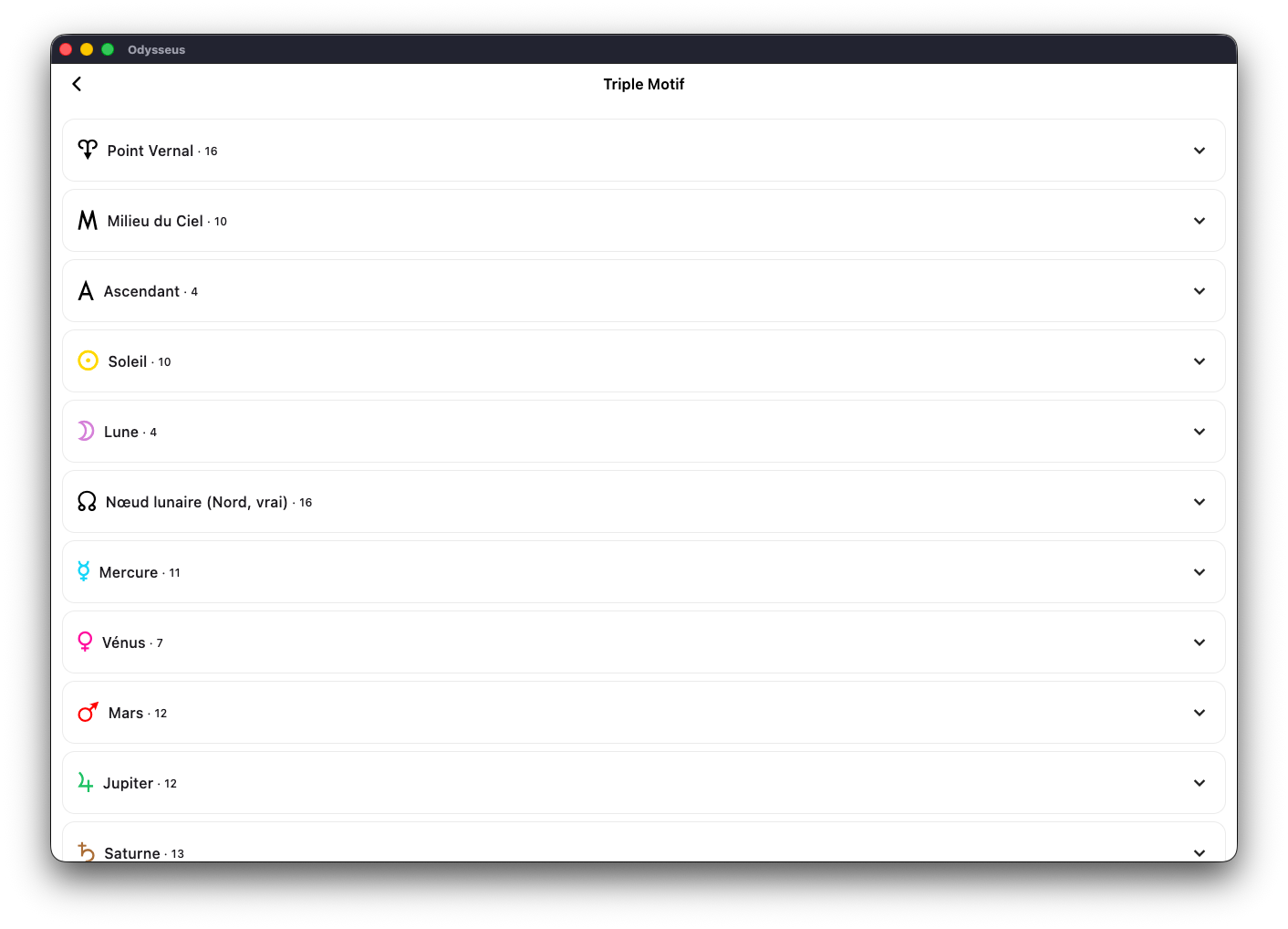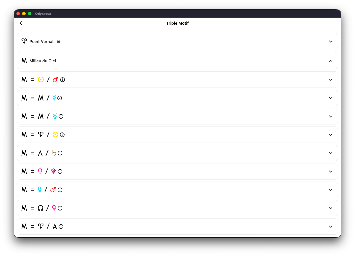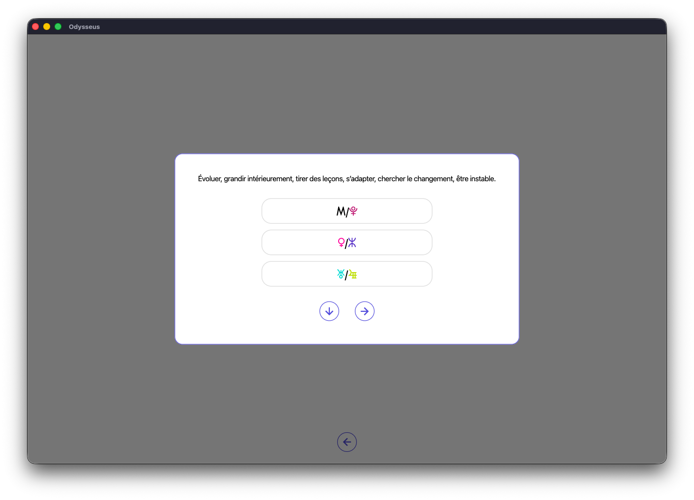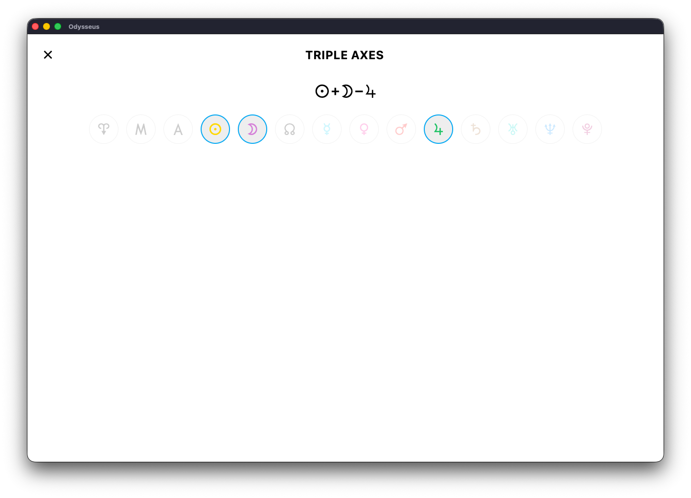 Le logiciel Odysseus® est un logiciel simple mais qui se veut le plus complet possible afin d’offrir une pratique de l’astrologie uranienne la plus exhaustive possible. Or, étant disponible avant tout sur téléphone et tablette, il fallait trouver des moyens d’optimiser l’espace le plus efficacement possible. Ainsi, quelques fonctionnalités se trouvent « dissimulées » au premier regard, et nécessite de connaître quelques astuces afin de les découvrir. Voici alors un guide pour vous aider dans votre emploi du logiciel.