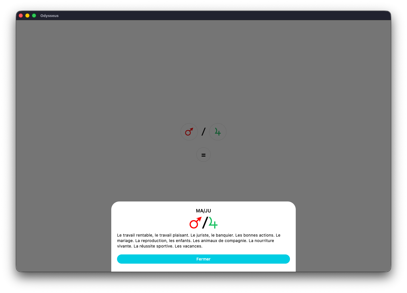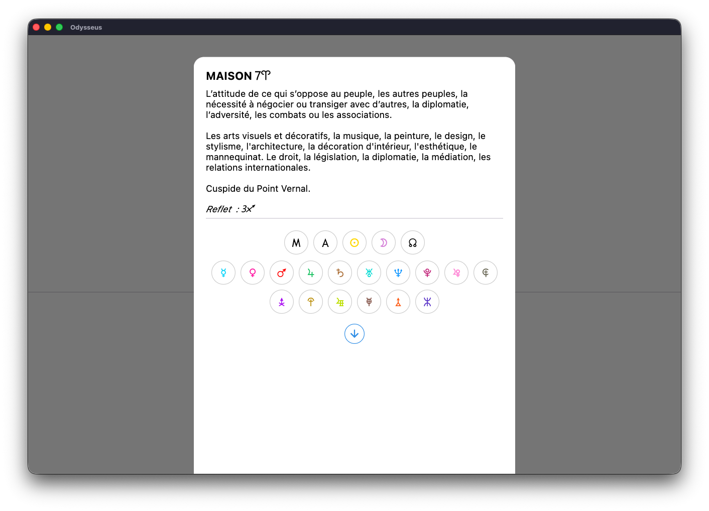 Tout d’abord vous trouverez le bouton ? vous présentant la théorie des Maisons uraniennes :