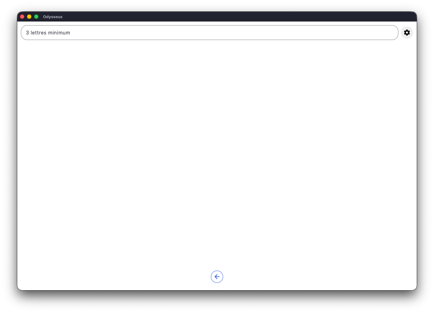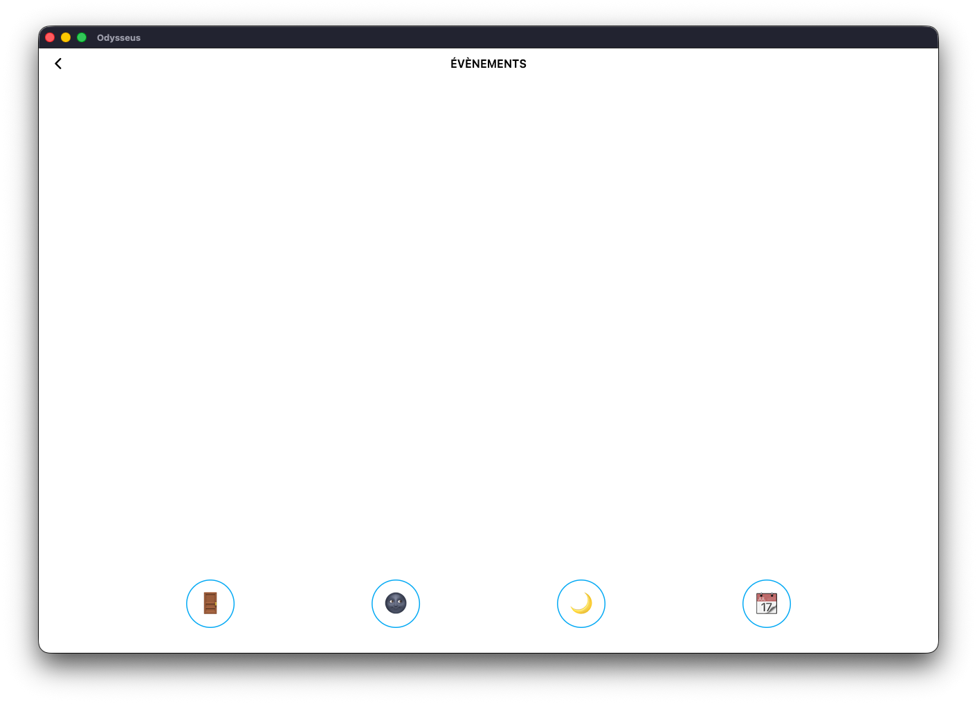 La page d’accueil d’Odysseus se compose de 5 boutons et un lien.
