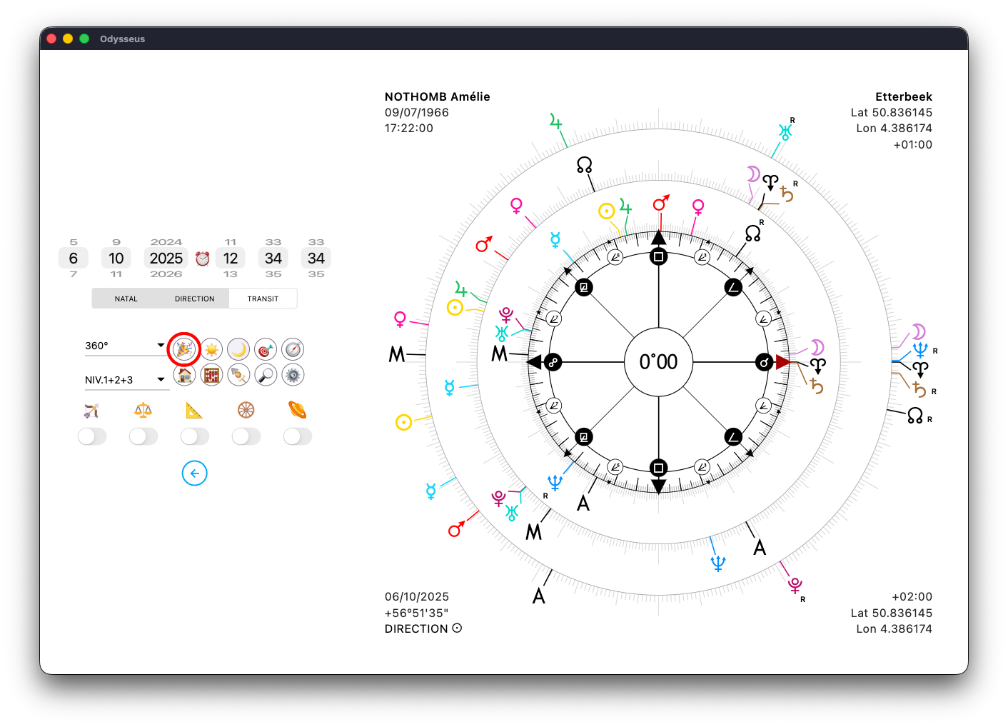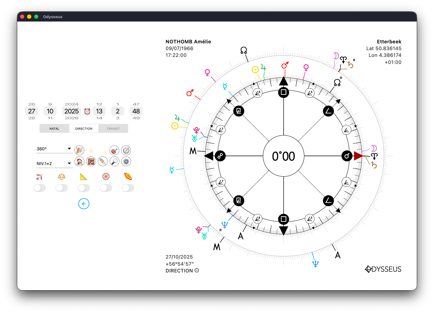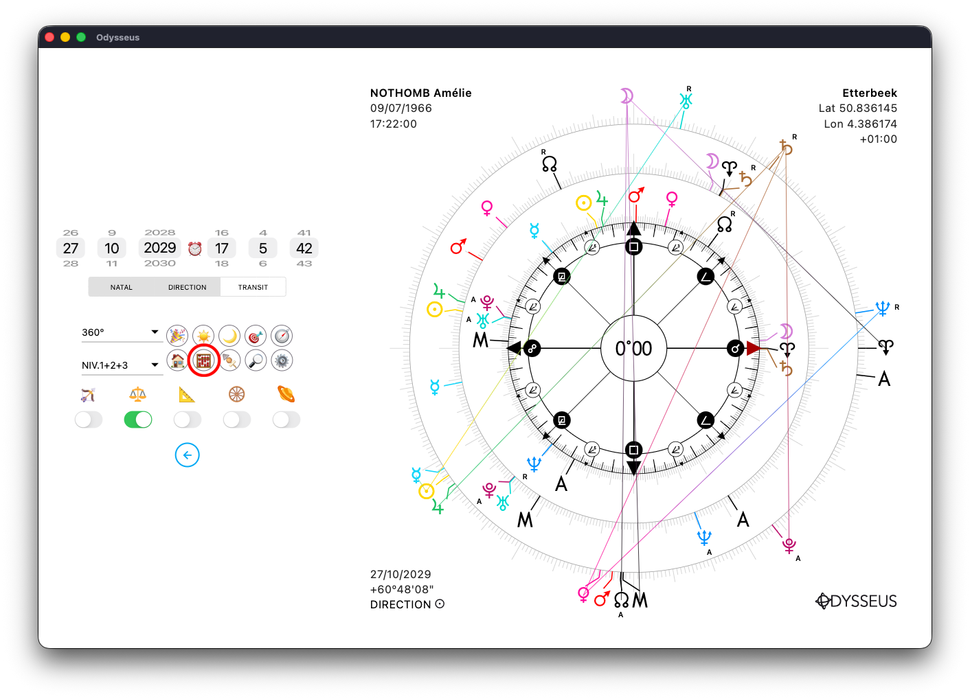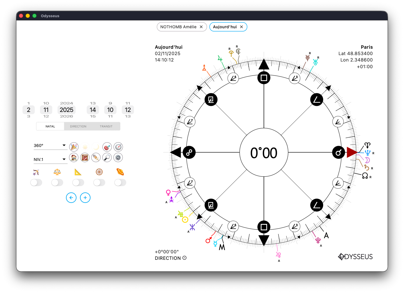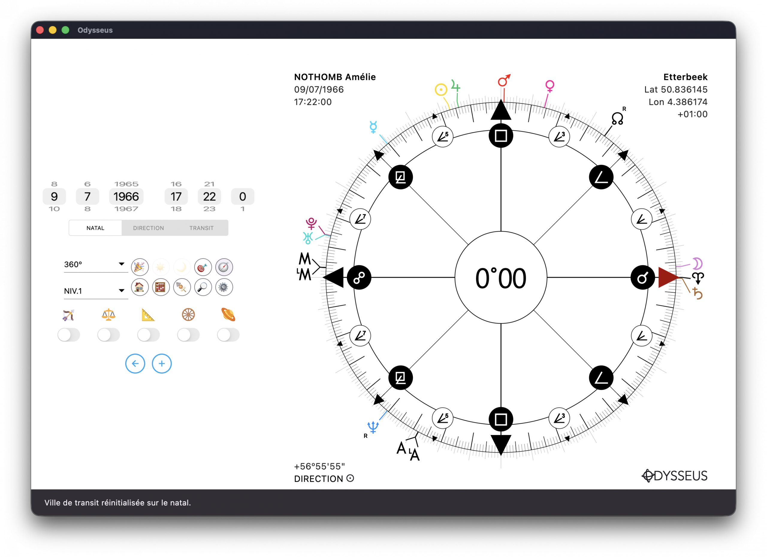 Vous pourrez aussi afficher soit le Niveau 1/Natal, soit le Niveau 2/Direction :