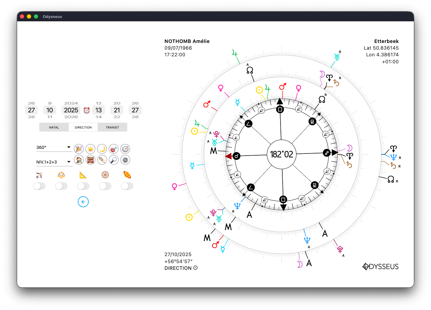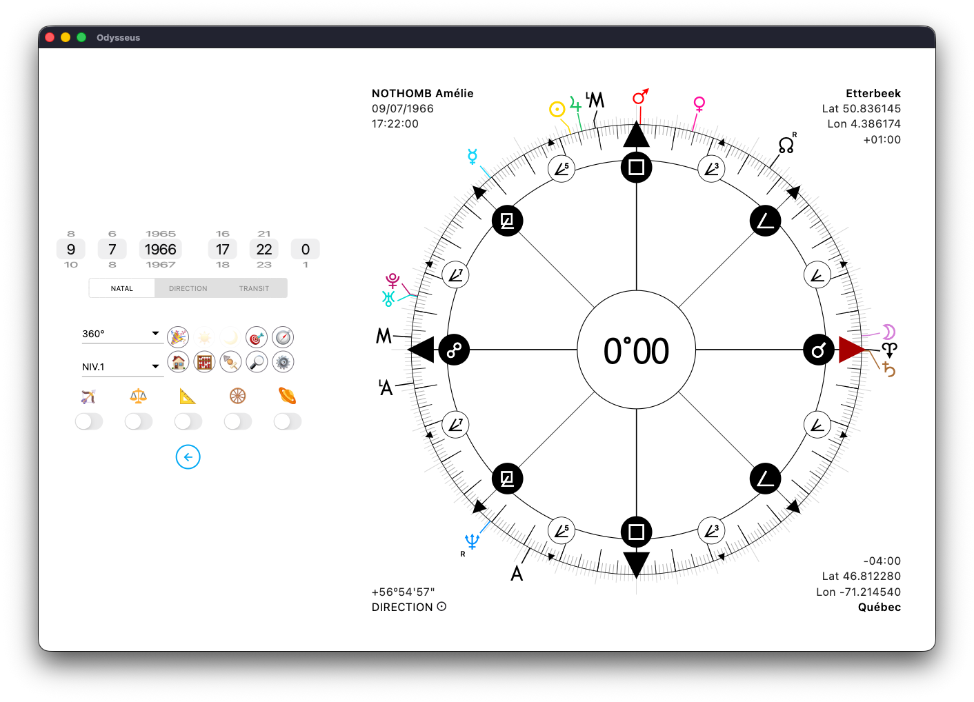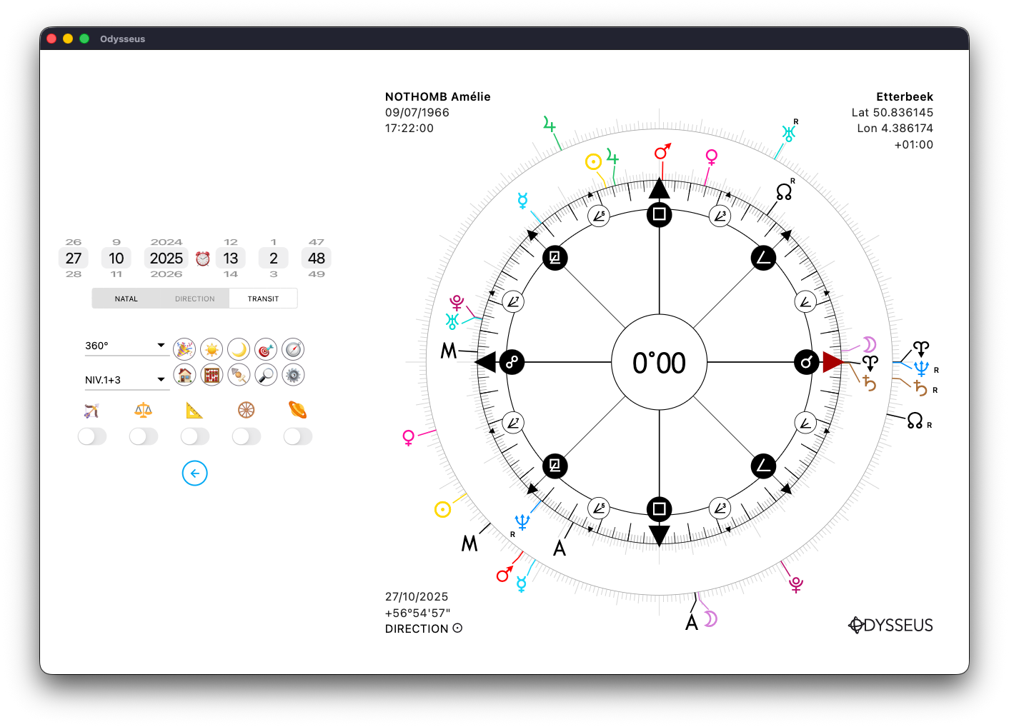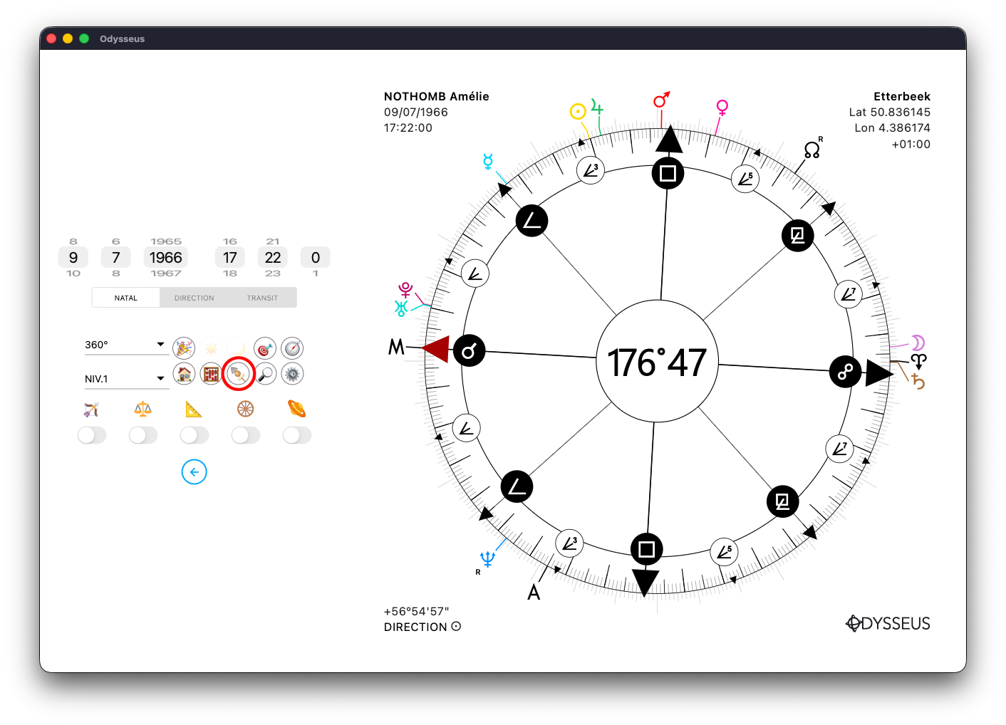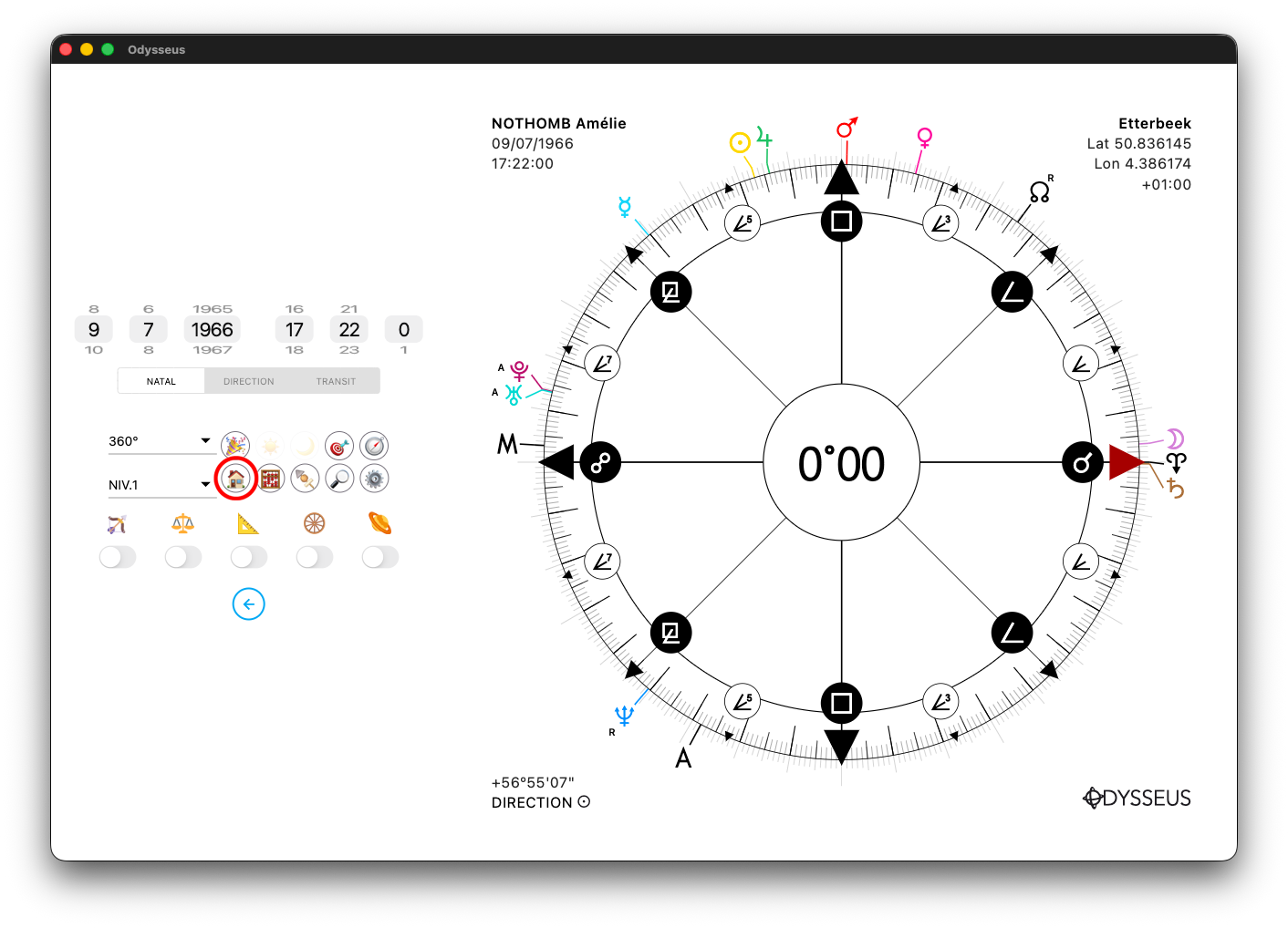 Vous pourrez aussi afficher soit le Niveau 1/Natal, soit le Niveau 2/Direction :