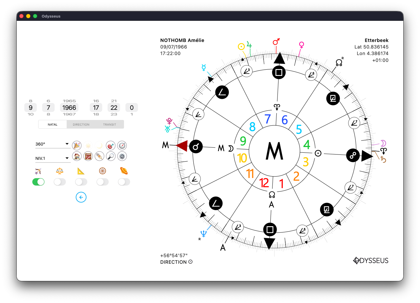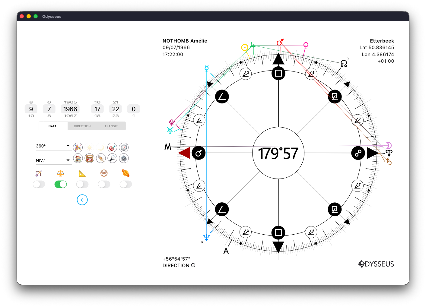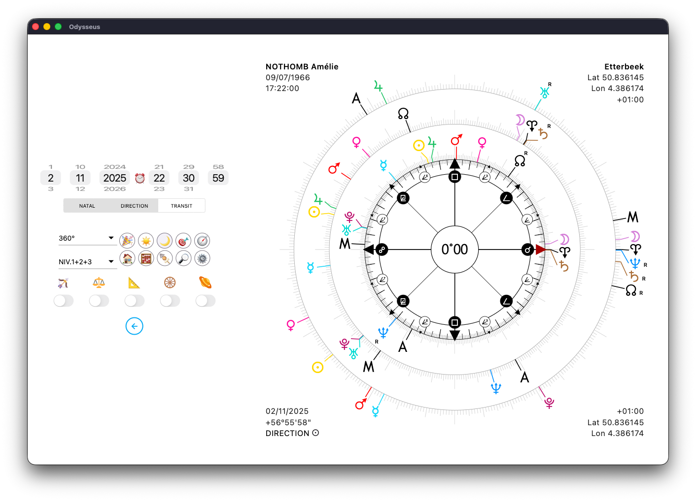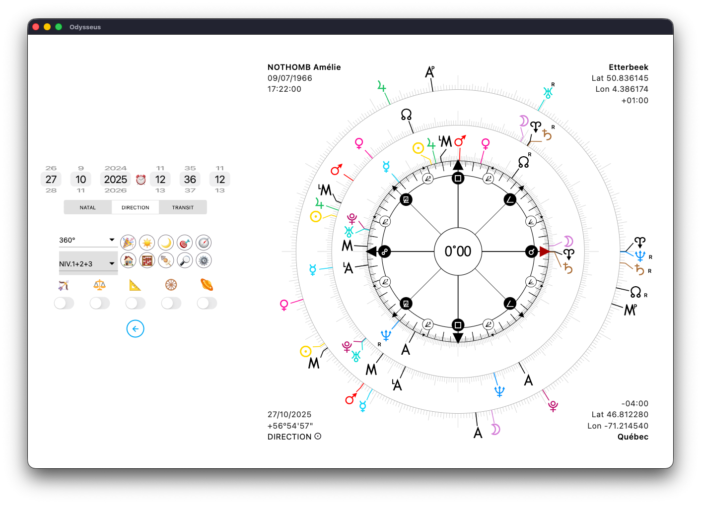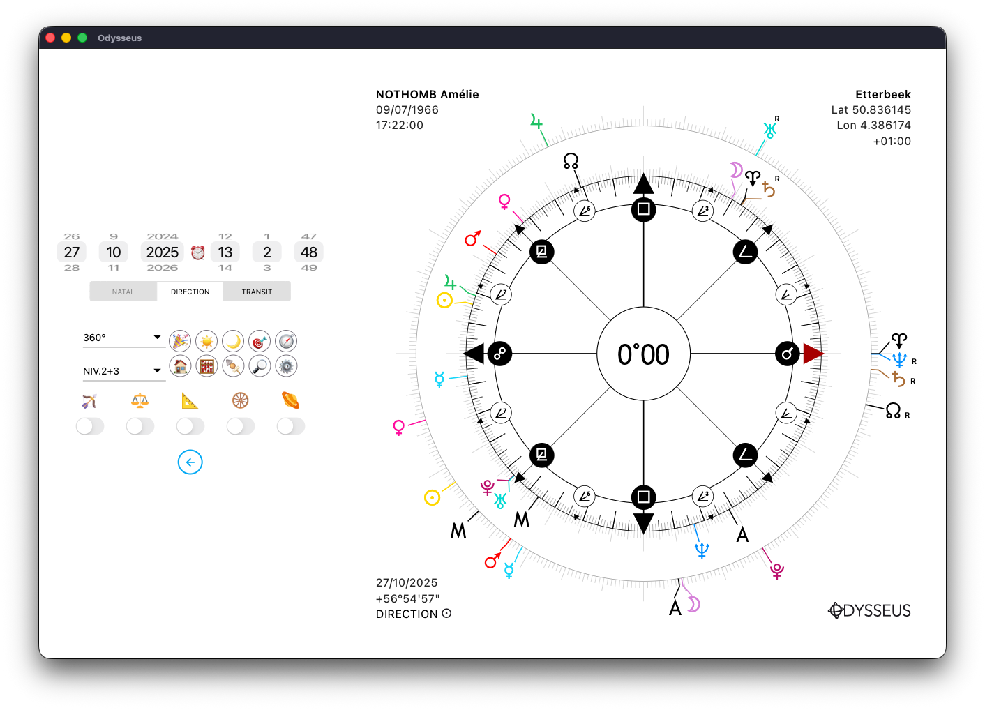 Vous pourrez aussi afficher soit le Niveau 1/Natal, soit le Niveau 2/Direction :