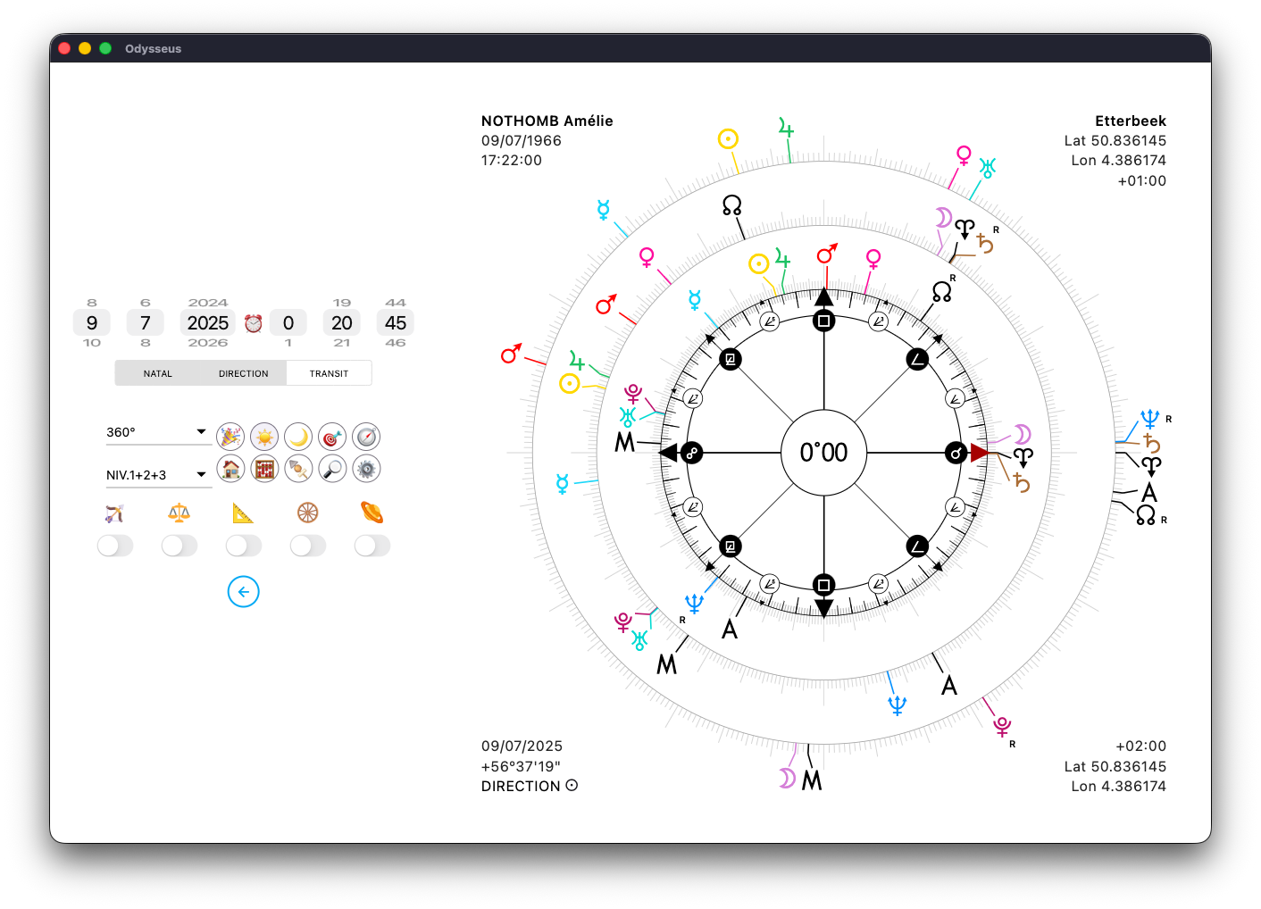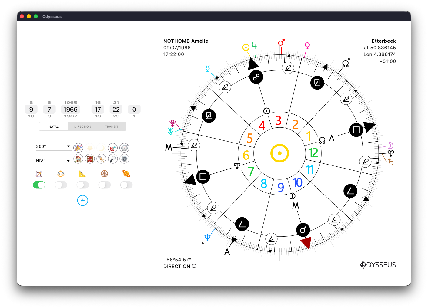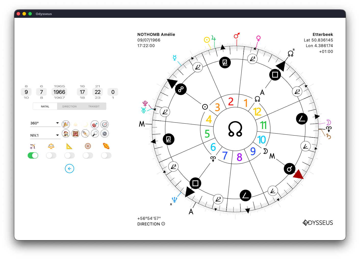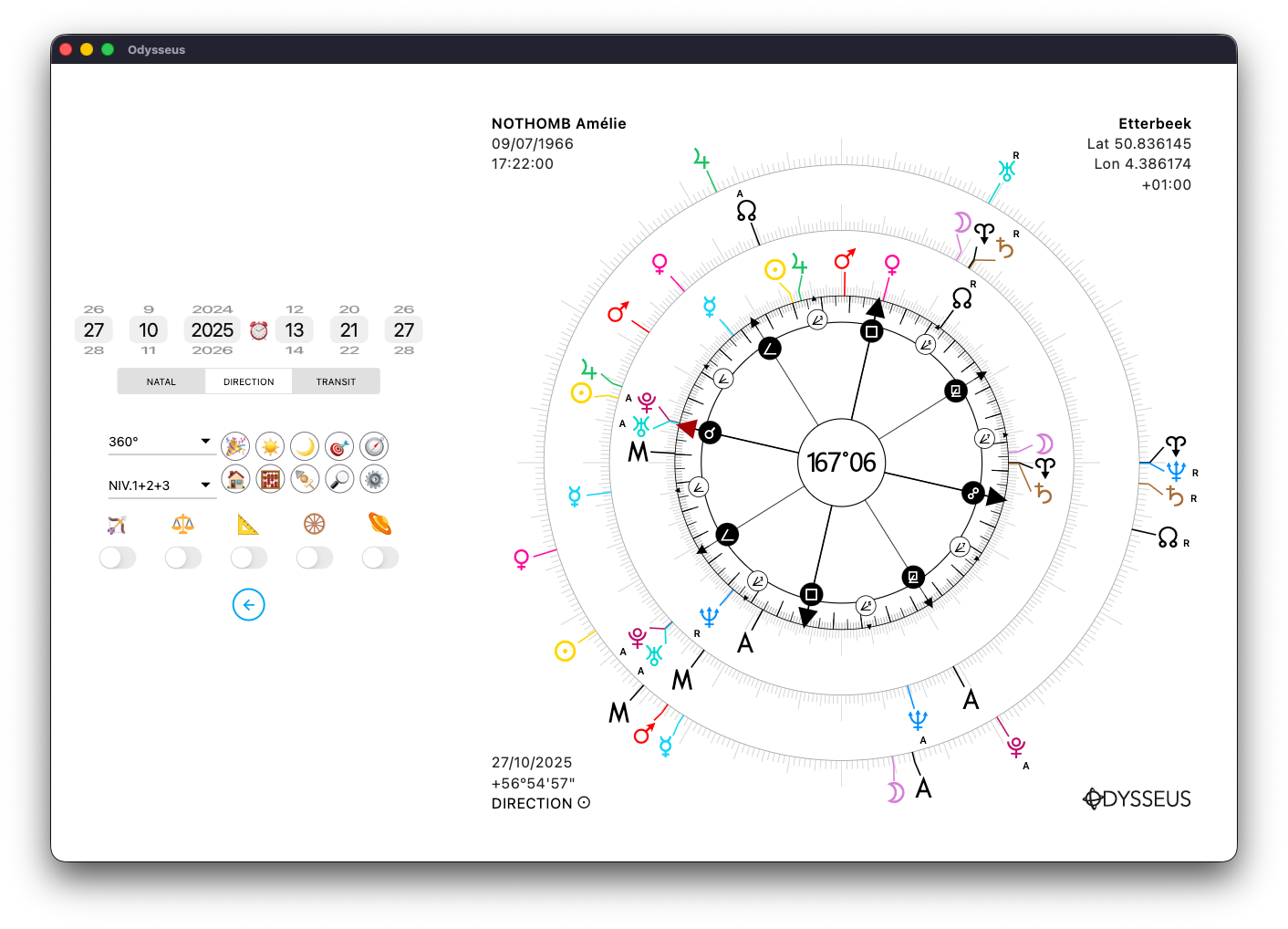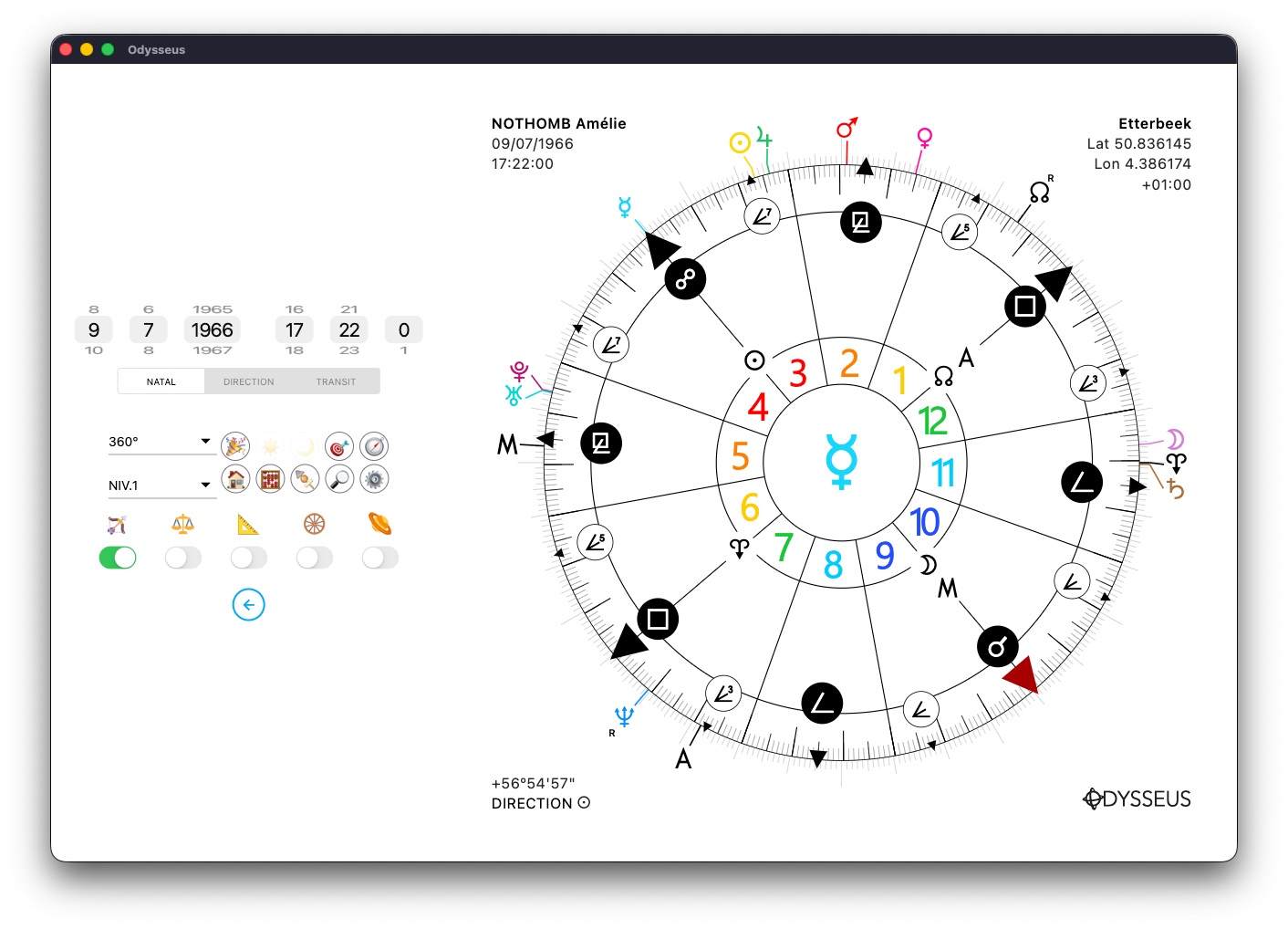 Vous pourrez aussi afficher soit le Niveau 1/Natal, soit le Niveau 2/Direction :