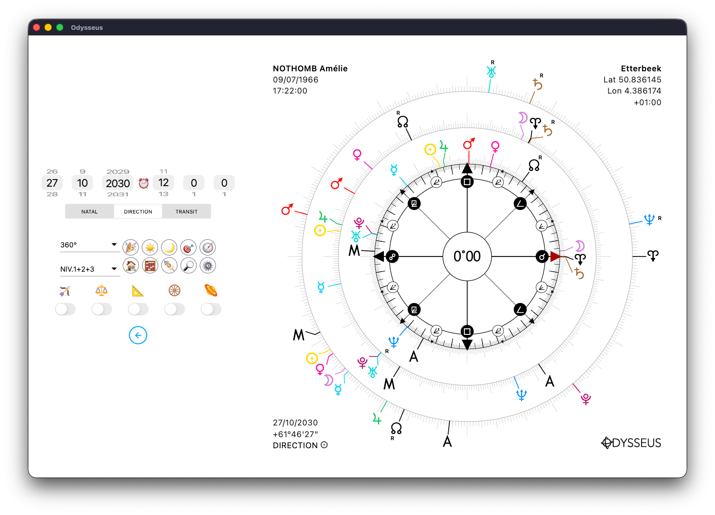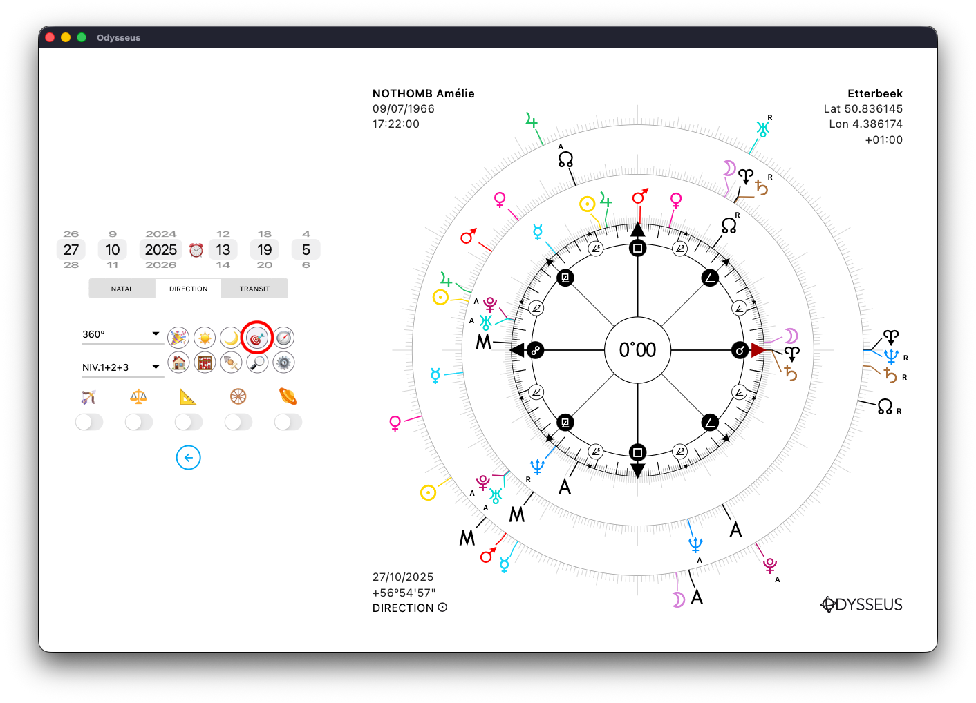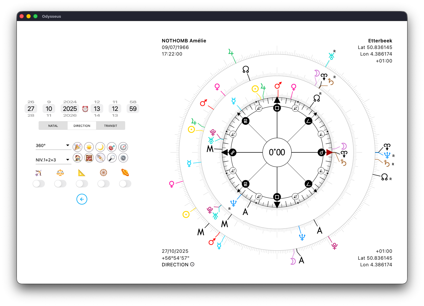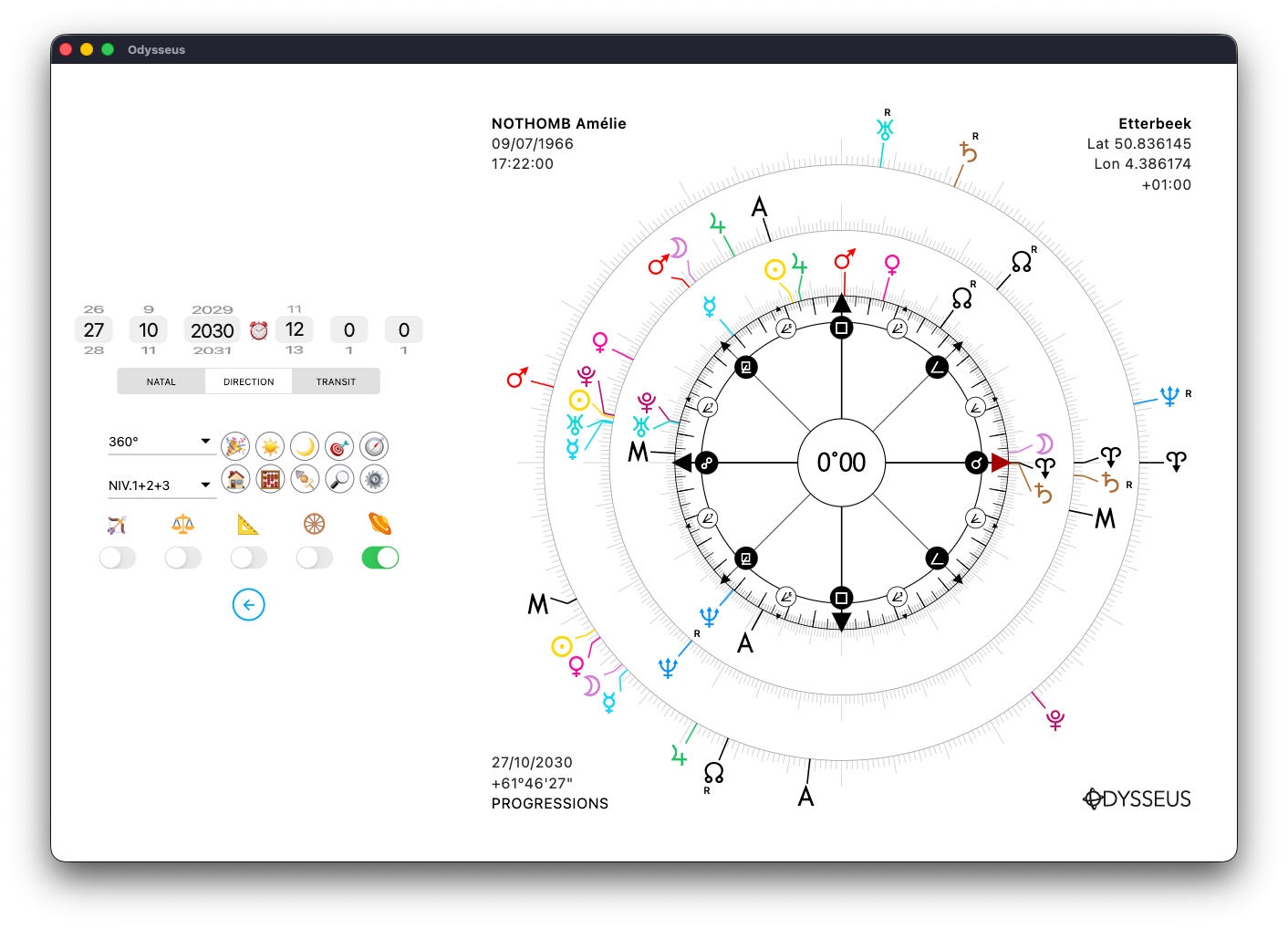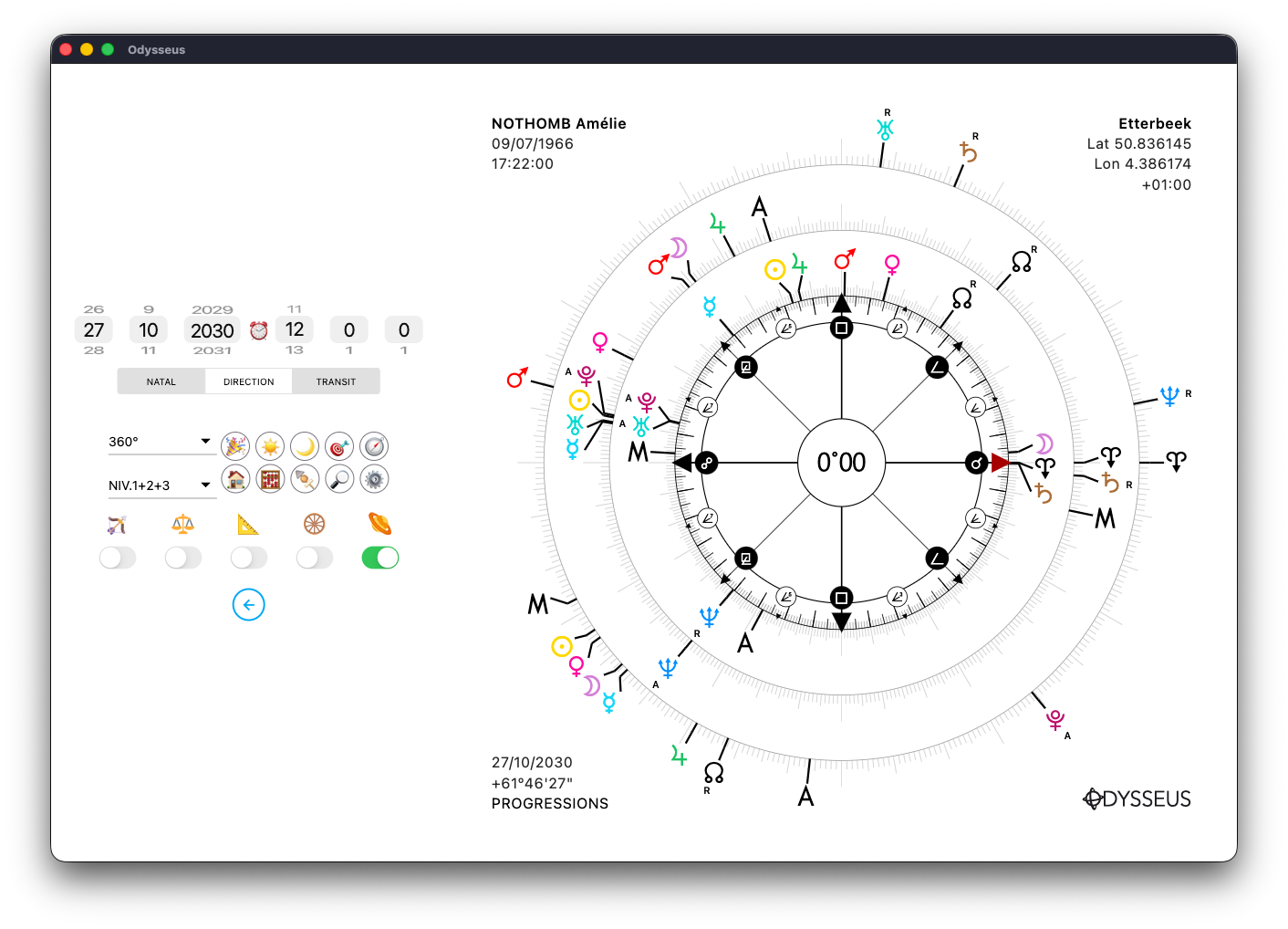 La direction se changera en progressions, les progressions classiques 1 jour = 1 année pour chaque planète avançant à leur propre pas.