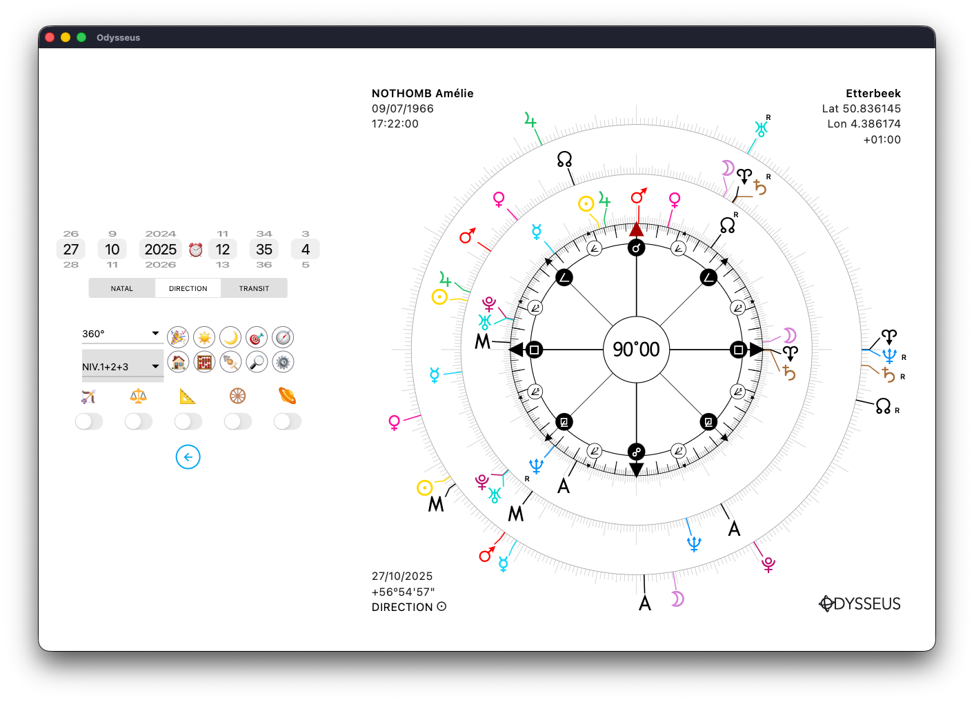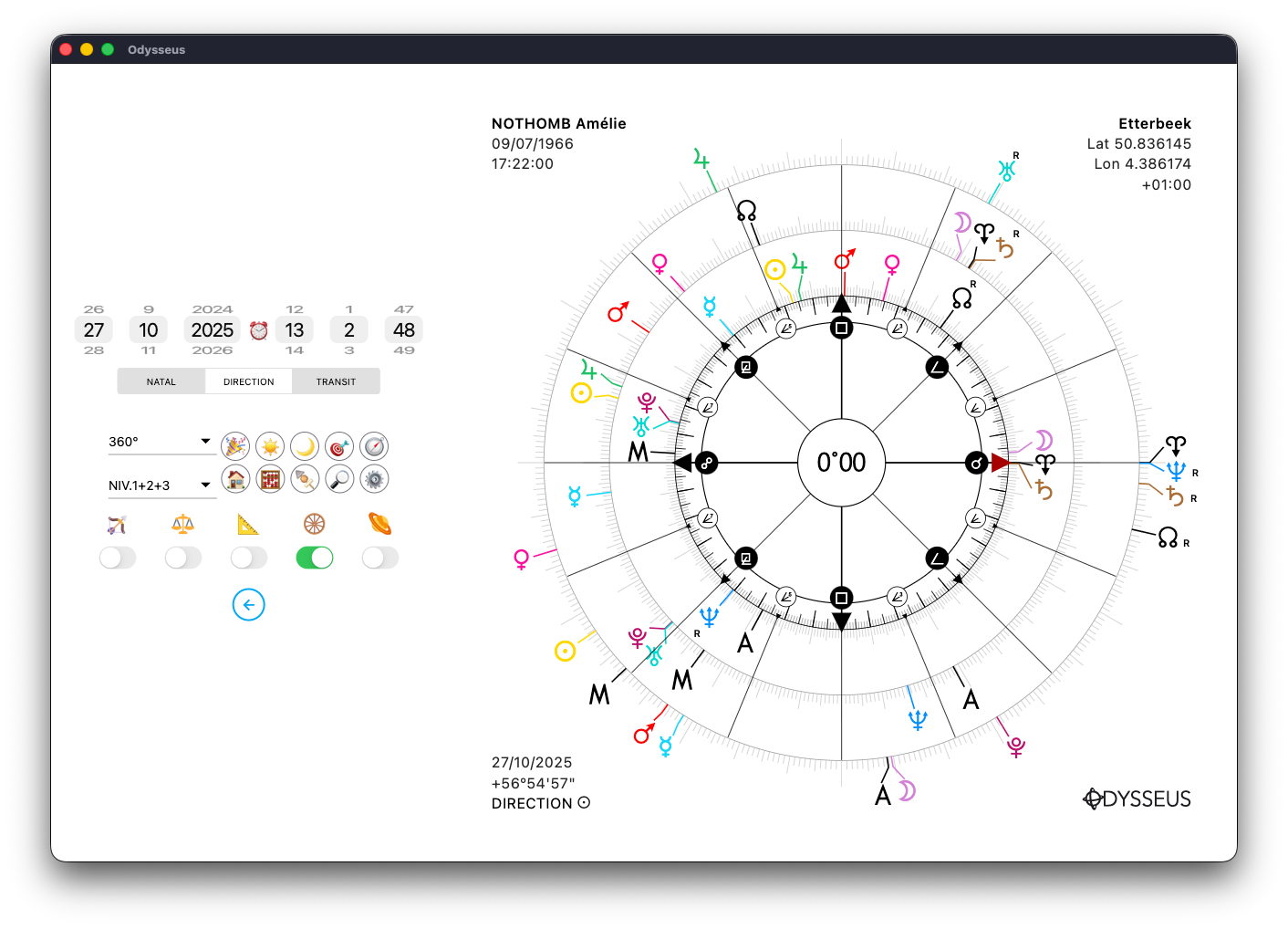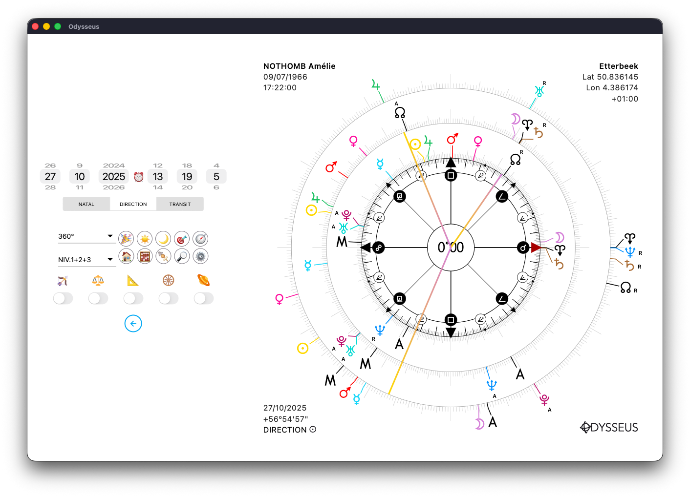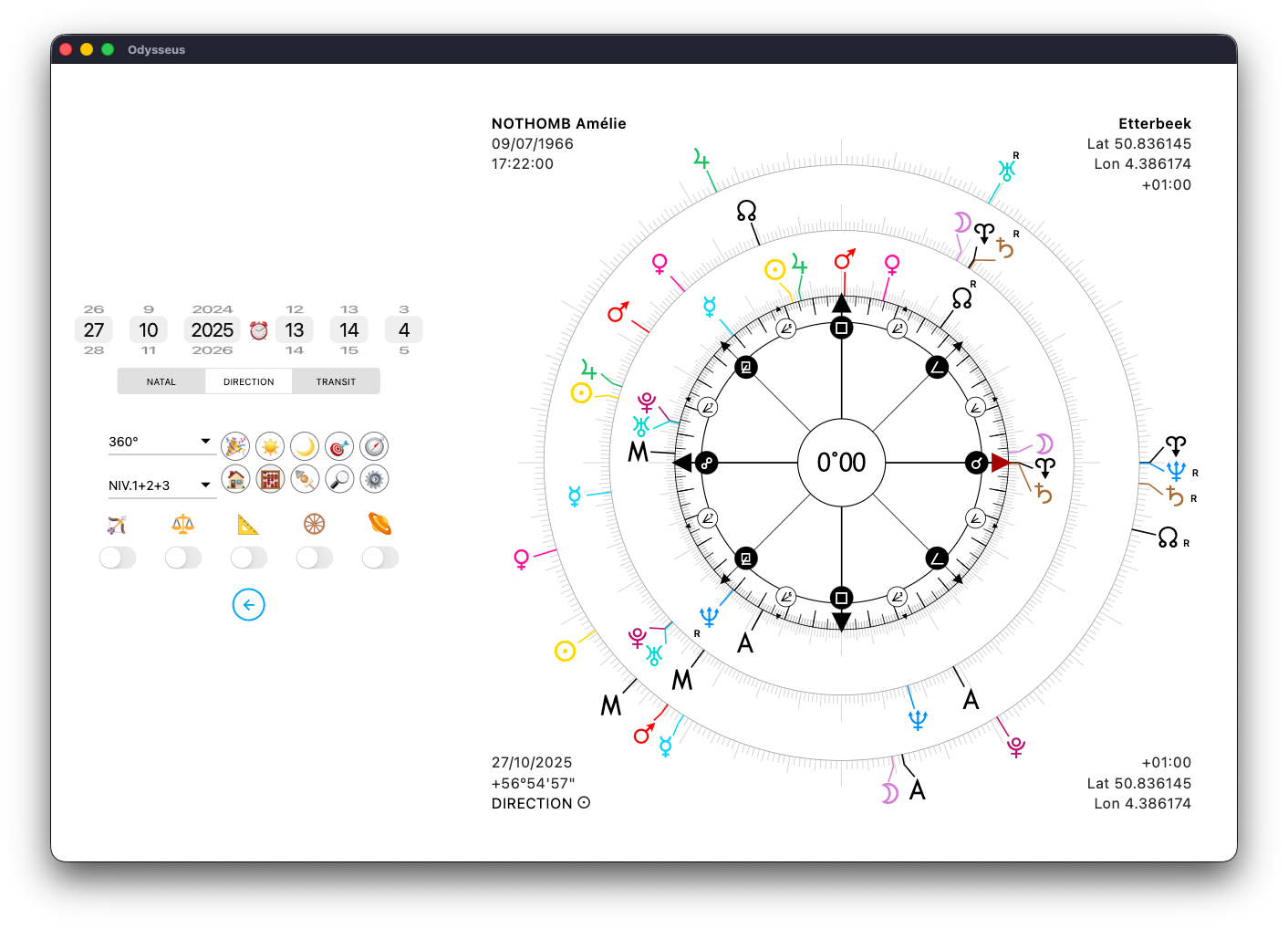 La direction se changera en progressions, les progressions classiques 1 jour = 1 année pour chaque planète avançant à leur propre pas.