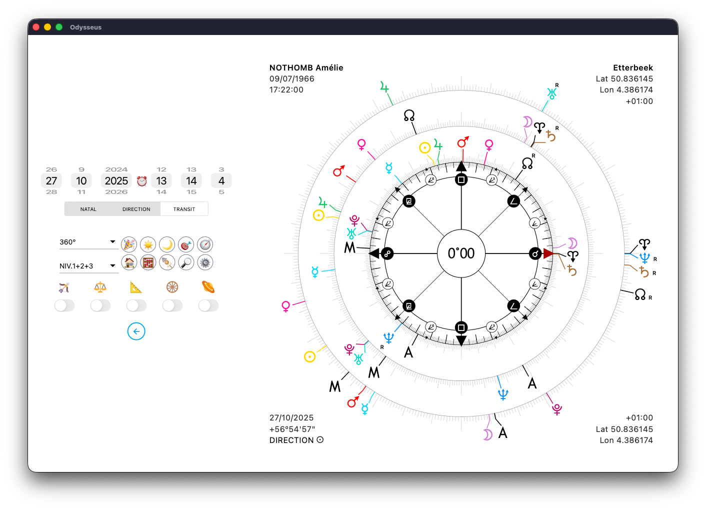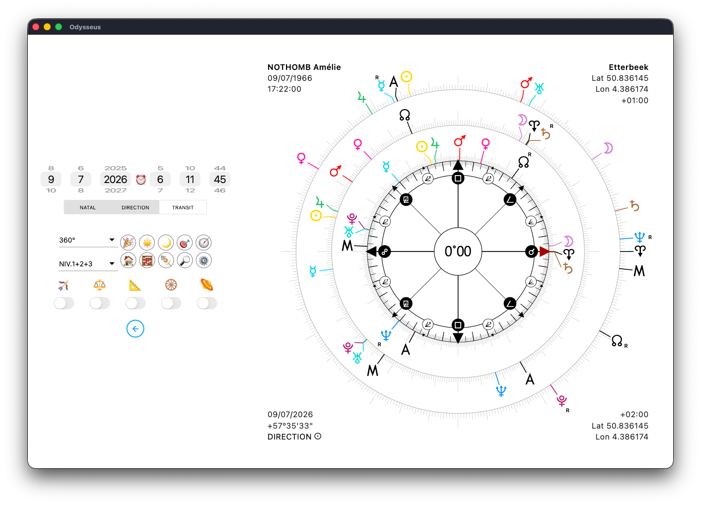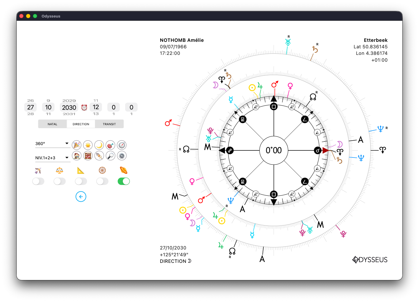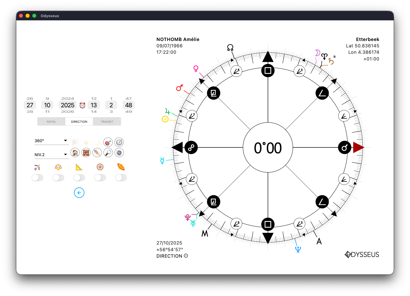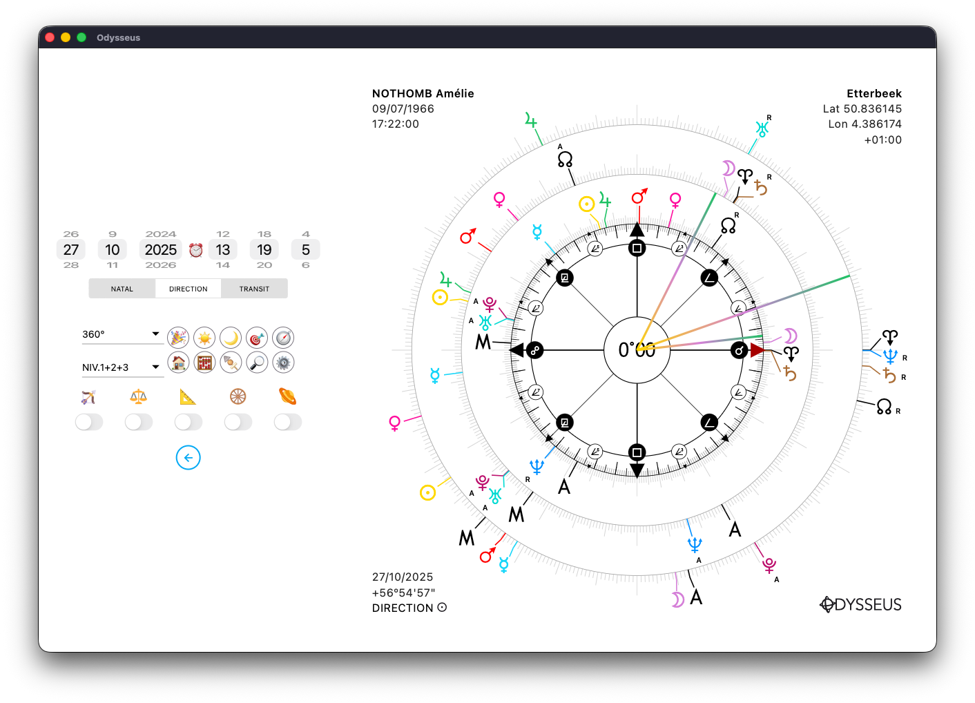 La direction se changera en progressions, les progressions classiques 1 jour = 1 année pour chaque planète avançant à leur propre pas.