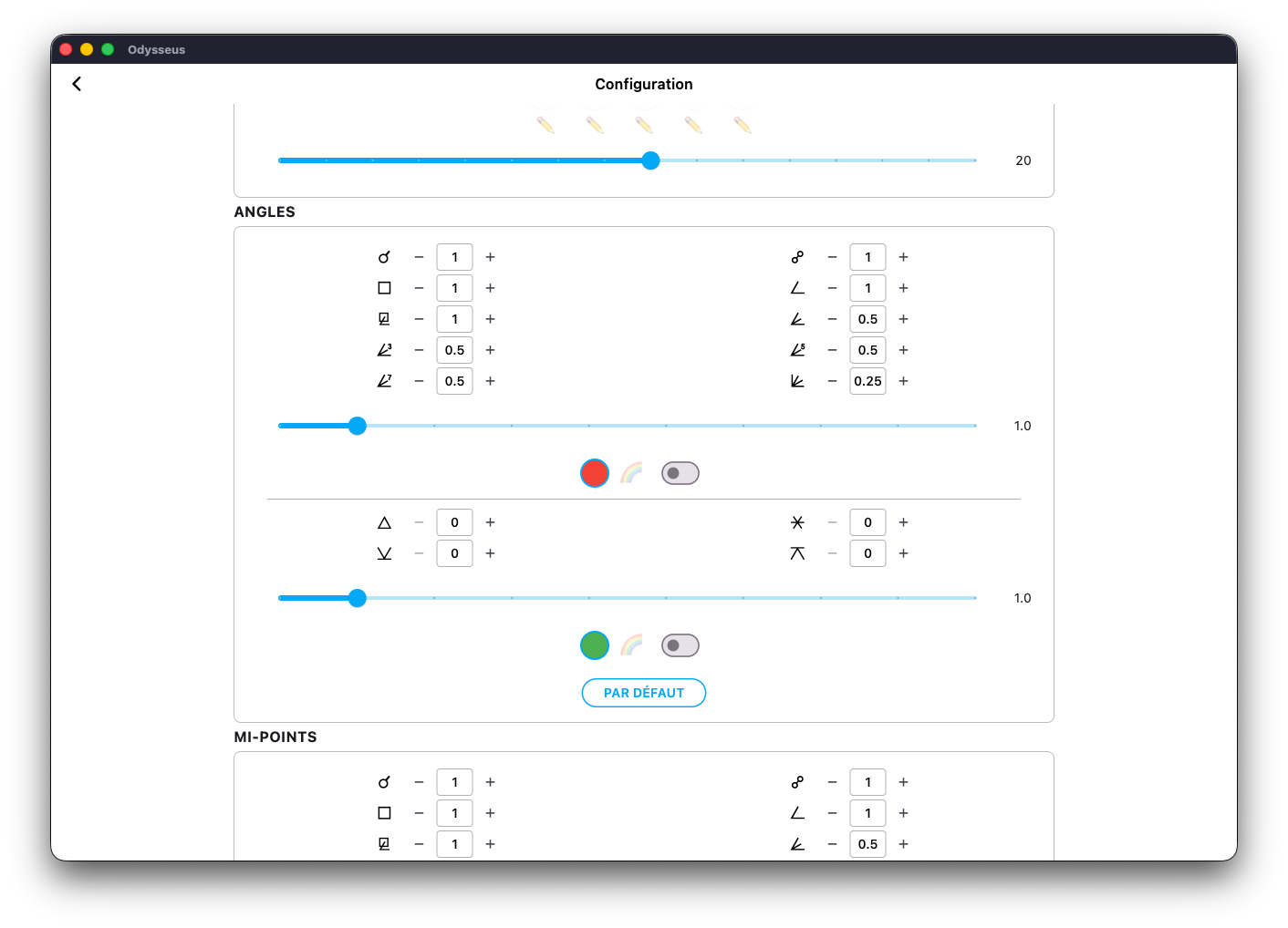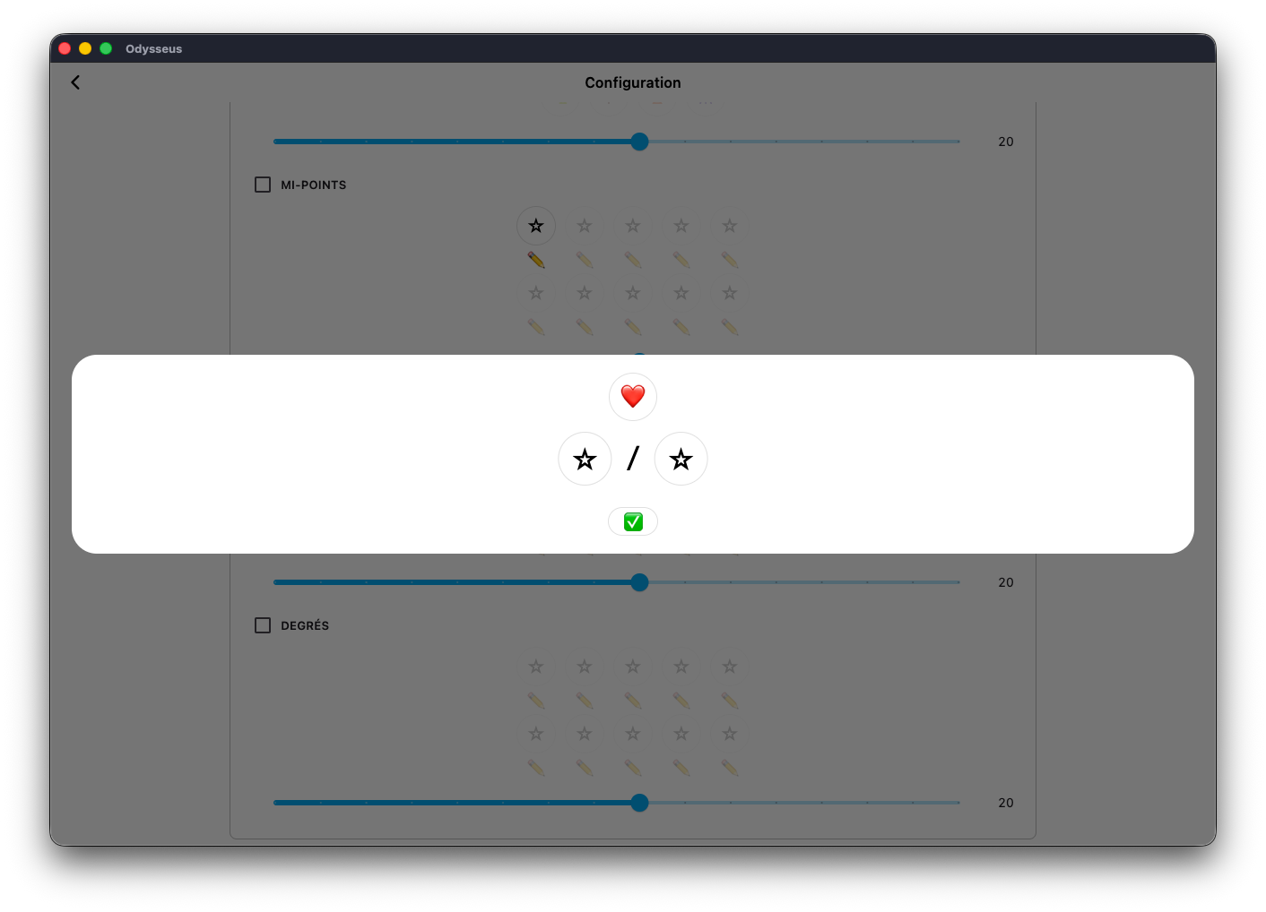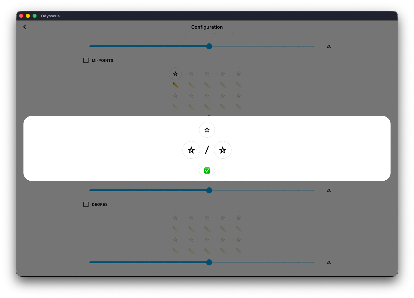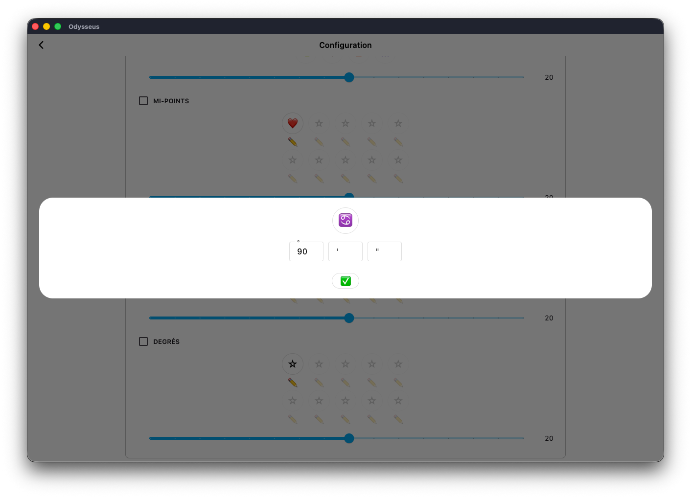 Si vous souhaitez réinitialiser les paramètres par défaut du panneau de Configuration, il vous suffit de faire un appui long sur le bouton en forme de rouage ⚙️, et une fenêtre vous proposera de tout réinitialiser. Attention, si vous avez créé des boutons personnalisés (mi-points, points sensibles, degrés), ils seront effacés également.