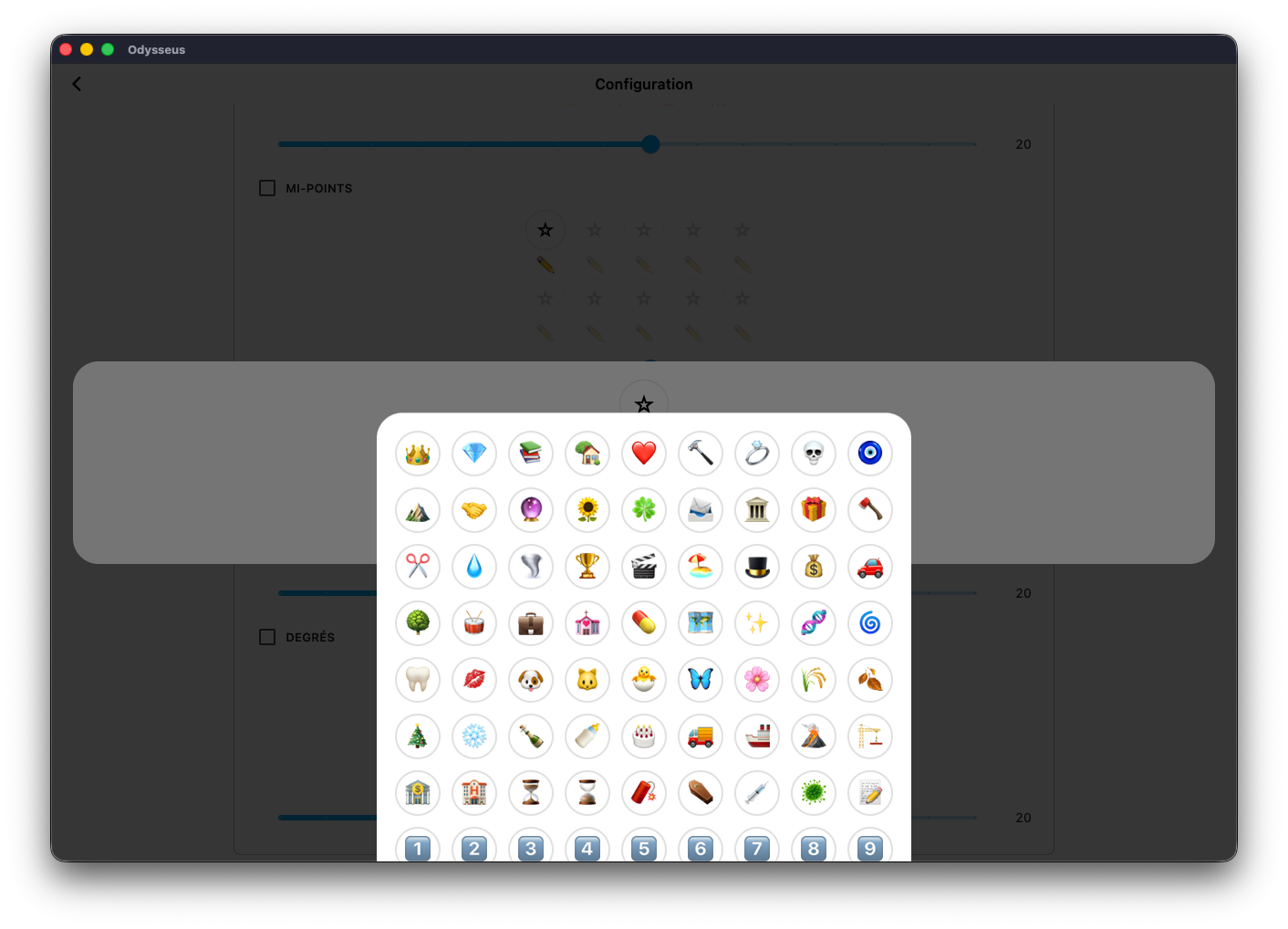 Apparaissent alors 3 étoiles ? et un bouton de validation ✅. En cliquant sur l’étoile ? du haut, vous pourrez sélectionner le visuel du bouton via une liste d’emoji :