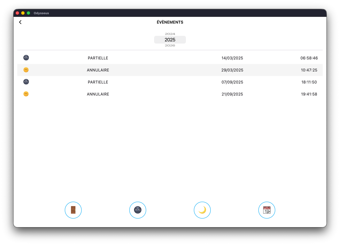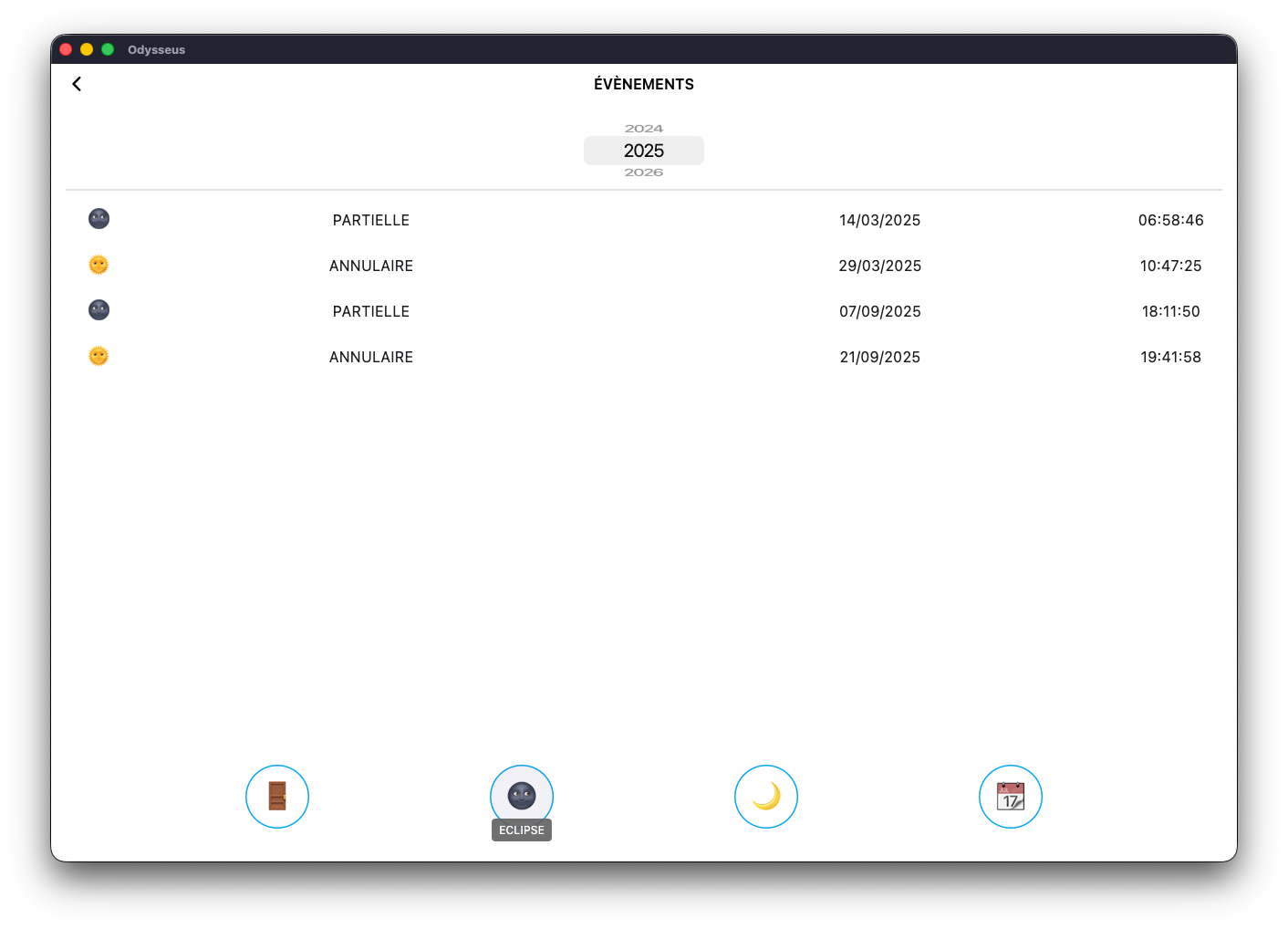 …permet de charger la liste des éclipses pour l’année spécifiée.