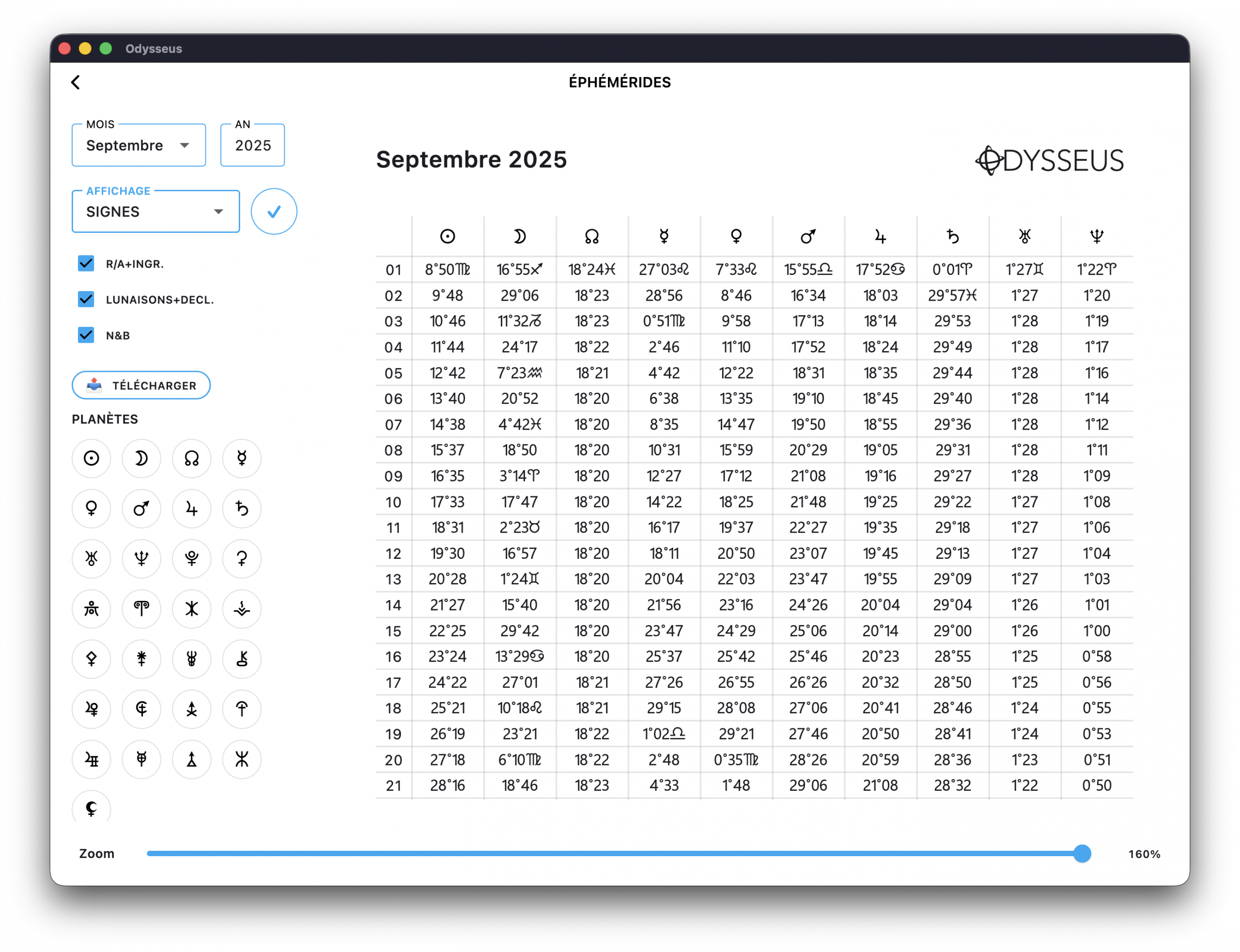 Sur la page de création de thème, vous avez accès au bouton 📊 qui mène vers le générateur d’éphémérides.