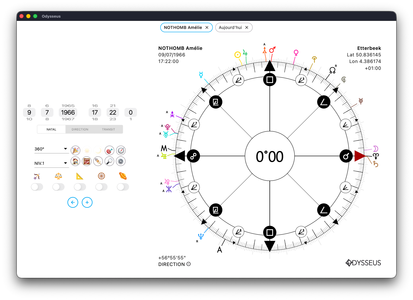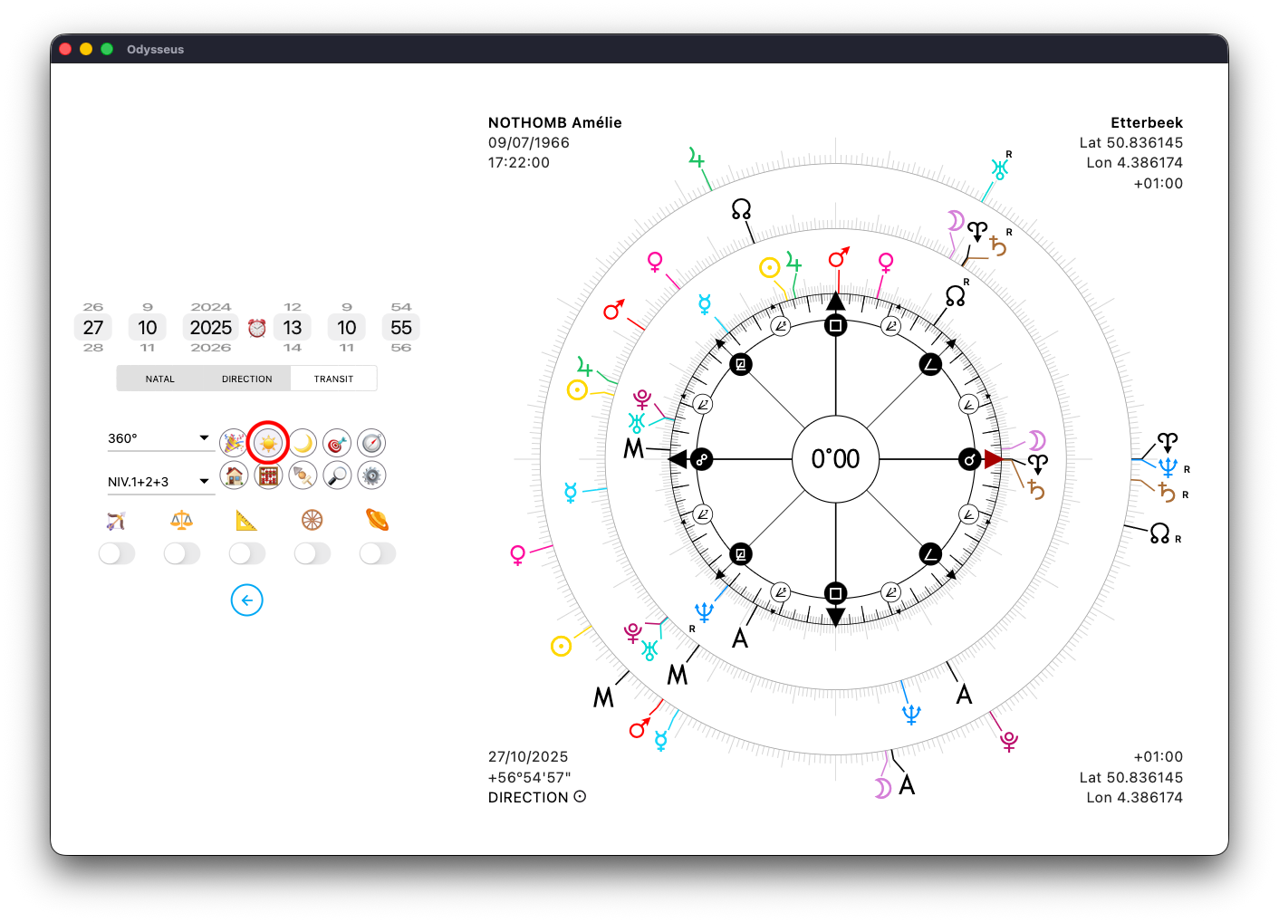 Vous pourrez aussi afficher soit le Niveau 1/Natal, soit le Niveau 2/Direction :