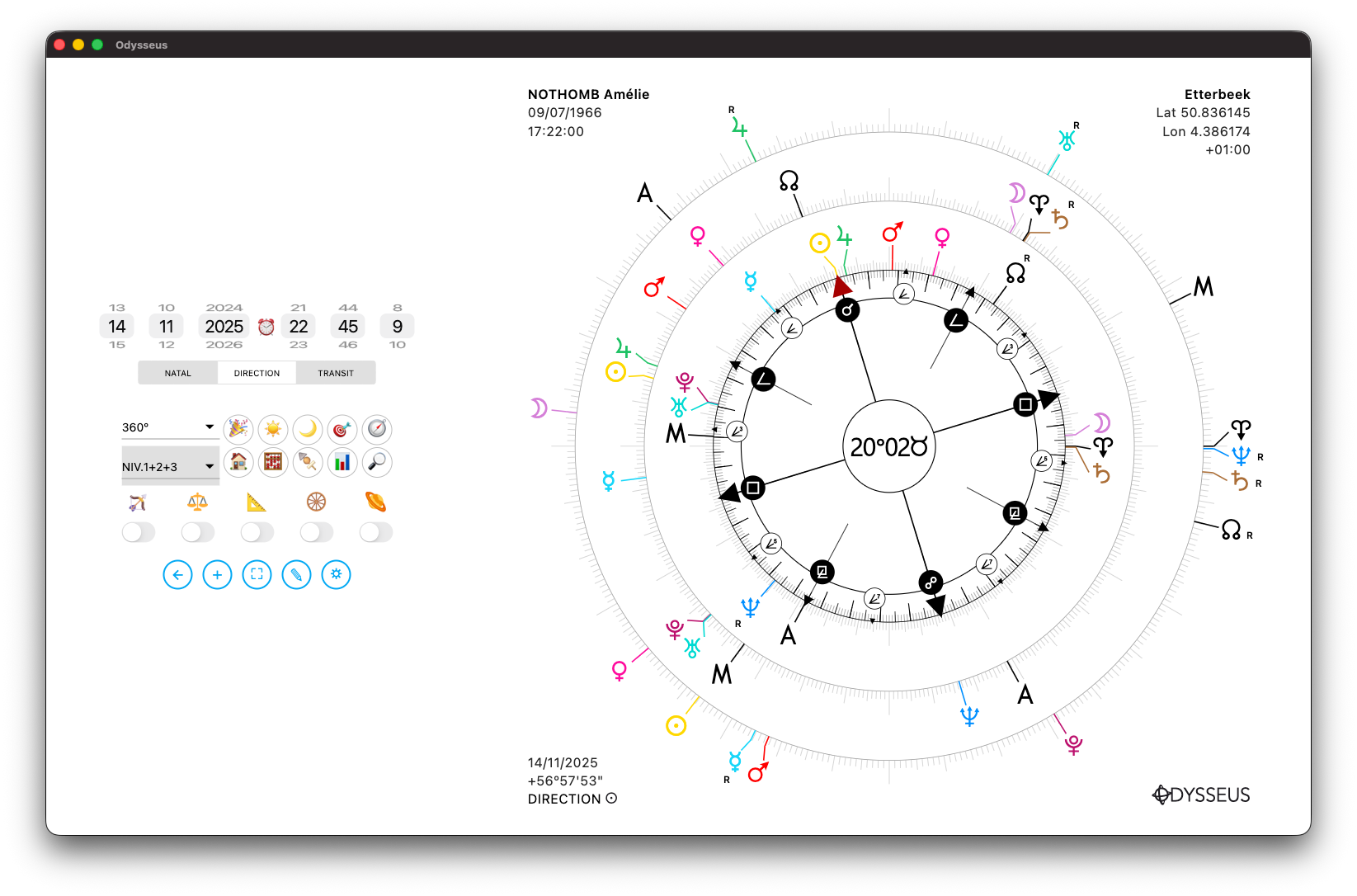 La direction se changera en progressions, les progressions classiques 1 jour = 1 année pour chaque planète avançant à leur propre pas.